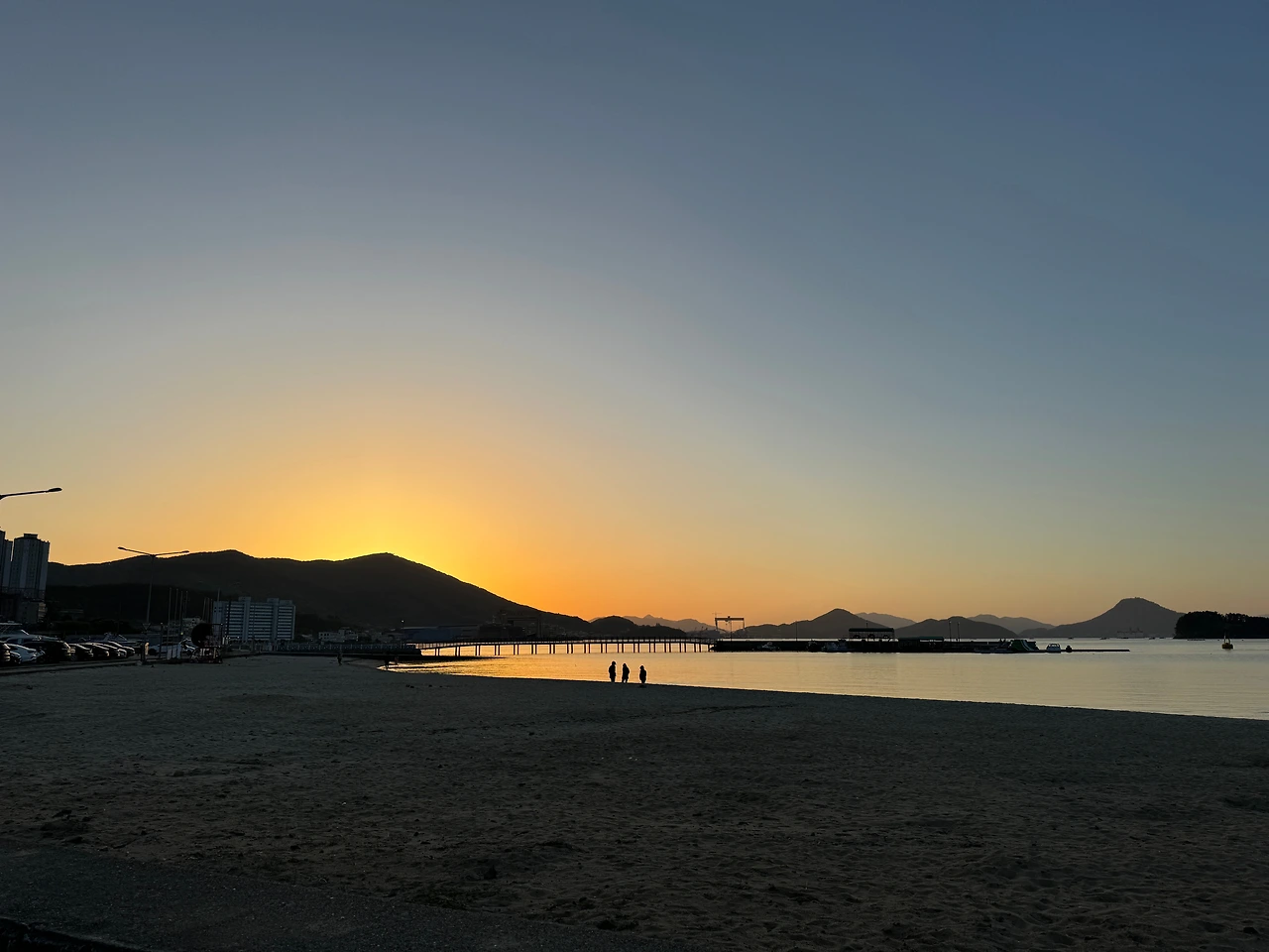 운전을 하게 된 후부터 퇴근 때에는 내가 운전을 하는 때가 많다. 이전에는 차 밖의 풍경을 운전하는 남편 대신 나 혼자서만 오롯이 누렸다면 이제는 남편에게도 그 풍경을 온전하게 즐길 수 있게 해 줄 수 있어서 좋다. 남편은 해가 지는 때의 따뜻한 그 느낌을 무척 좋아하는데, 바로 어릴 때 만화 '슬램덩크'가 방영할 즈음에 집에 가던 그 때가 생각나서라고 한다. 연애 할 때도 이렇게 일몰이 펼쳐질 때 함께 걸으면 그 시절을 이야기하곤 하는데, 이 때의 아늑함과 하루를 잘 살아냈다는 그 뿌듯함이 함께 다가와서 일몰을 좋아한다고 한다. 노랗기도, 빨갛기도 한 하늘과 이곳 바다가 함께 하는 일몰. 오늘 하루의 일과도 잘 마무리한 우리에게 펼쳐진 그 광경이 선물 같아서 더 예쁘게 느껴지는 것 같기도.