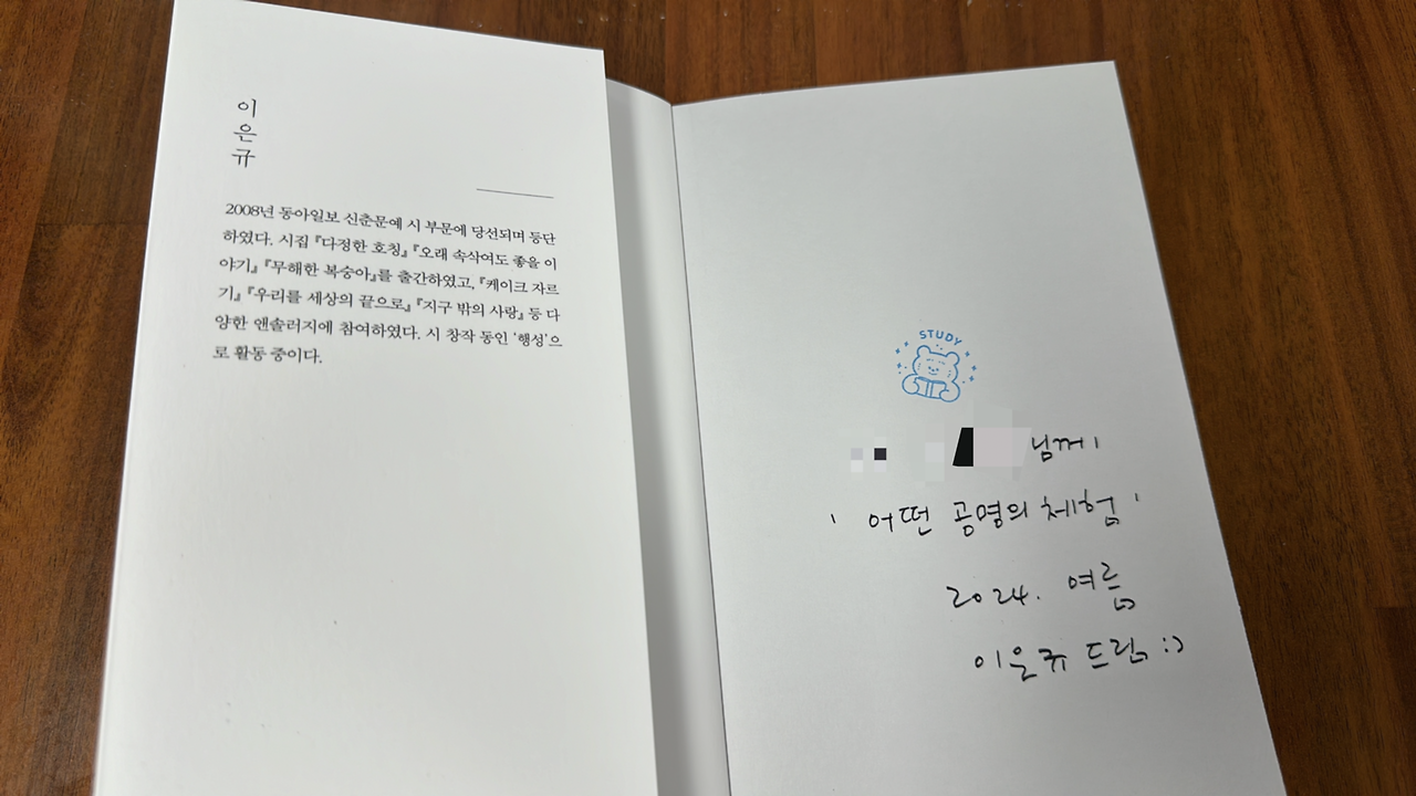 이은규 시인의 시를 많이 좋아한다. 시집 <다정한 호칭>, <오래 속삭여도 좋을 이야기>, <무해한 복숭아>까지 시인의 모든 시집을 가방에 두고 읽은 적이 많았다. 국문학도로서 시인의 시창작 수업을 들어볼 수 있었던 건 내 대학 시절의 소중한 재산이라 여길 만큼. 그 당시 나의 눈으로는 바라볼 수 없었던 일상에 대한 애틋함과 따스함이 시인의 시에서는 항상 느껴졌다. 그래서 더 시인의 시를 좋아했던 것 같다. 내가 가지고 싶은 시인의 눈을 가진 사람이라서.
