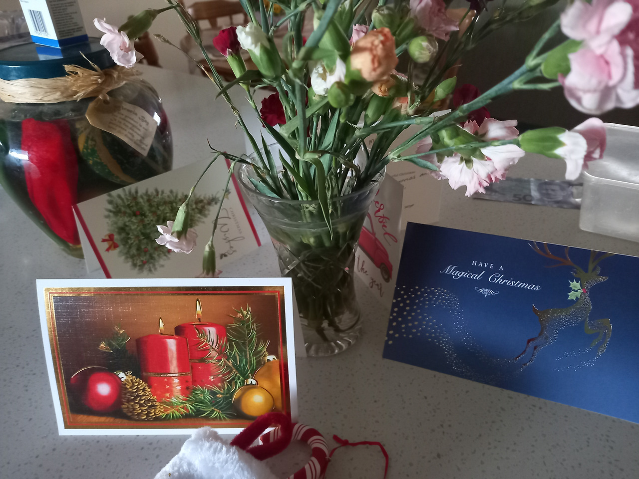 그런데 특이한 점은 영국 백그라운드가 있는 대부분의 노인들은 선물과 함께 크리스마스 카드를 같이 준비한다는 것이다. 이들은 카드를 써서 보내고 카드를 많이 받는 것을 매우 자랑스러워한다. 그래서 크리스마스 장식을 할 때 보면예전에받았었던 오래된 카드들을 보관했다가 꺼내와서 다시 걸어 놓거나 트리 주변에 함께 세워 놓기도 한다. 특히나 카드를 직접 쓰기보다는 sns 등으로 인사를 대신하는 요즈음은 아무래도 카드를 주고받는 경우가 예전보다 훨씬 줄어서그런지 예쁜 카드한 장을 그 어떤 선물보다 기뻐하면서 받는다.