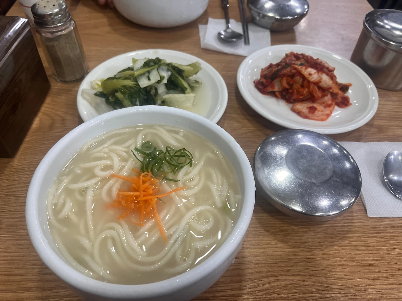 연희동칼국수는 사골육수 베이스다. 건더기도 없다. 그냥 뽀얀 국물에 당근 조금과 파 조금이 고명으로 올라갈 뿐.