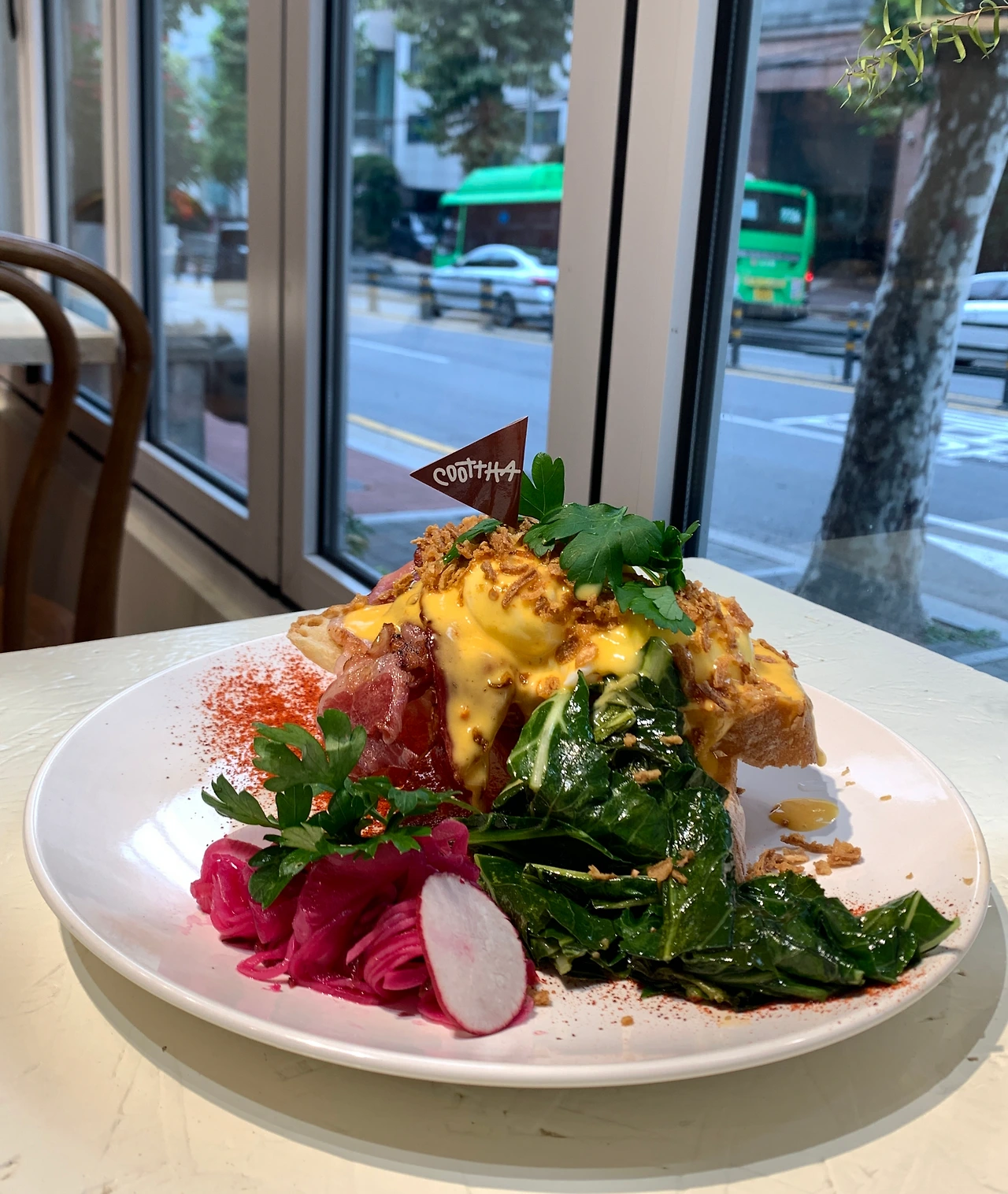 연희삼거리에서 주욱 올라가면 나오는 쿳사 연희는 호주식 브런치 집이다. 그래서 그런지 외국인 손님들이 많다. 팬케이크와 잘 구운 베이컨, 스크램블드 에그, 큰 소시지가 떠오르는 것이 미국식 브런치라면 호주식 브런치는 좀 더 건강한 느낌이다. 잘 구운 야채와 사워도우가 가장 먼저 생각난달까.