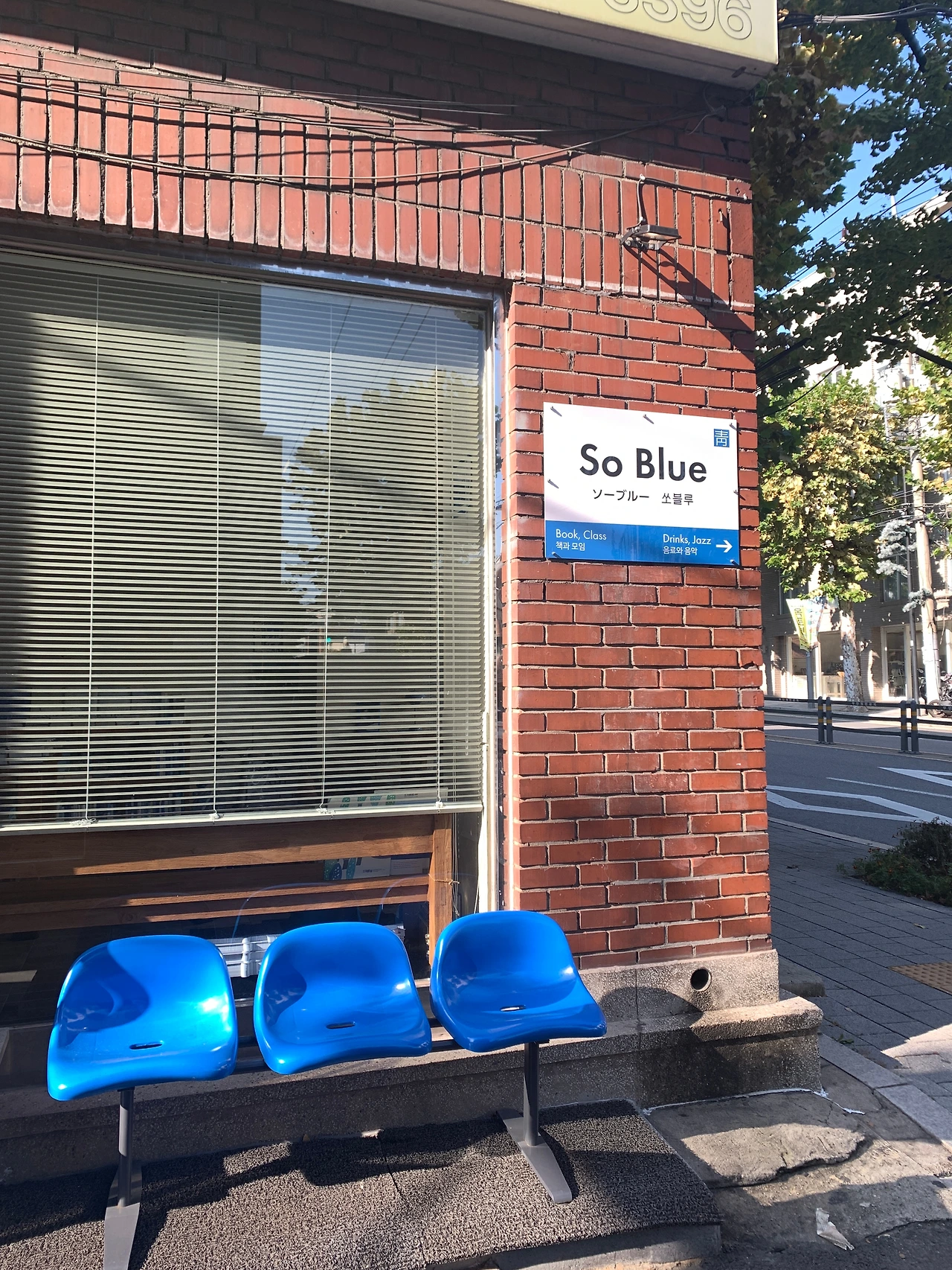 쏘블루에서는 계속 재즈가 흘러 나온다. 신청곡도 신청할 수 있다. 매주 수요일과 일요일에는 재즈 감상회를 연다. 쏘블루는 두 가지 뜻이 있는데 '아주(so) 블루', 그리고 '그래서(so) 블루' 라는 중의적 표현이라고 한다.