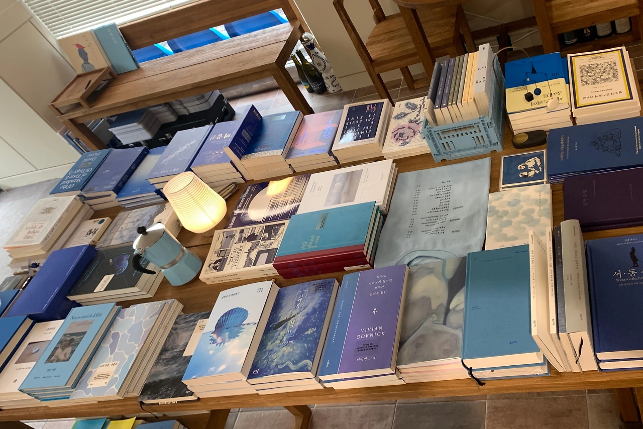 자유롭게 책을 가져다 봐도 된다기에 절로 흥분이 되는 마음을 감출 수 없었다. 조금 진정하고서 책들을 한 권 한 권 살펴보는데 내가 소장하고 있는 책들이 꽤 많이 있었다. 아 맞다, 이 책 표지가 파란색이었지, 라고 다시 생각하면서.