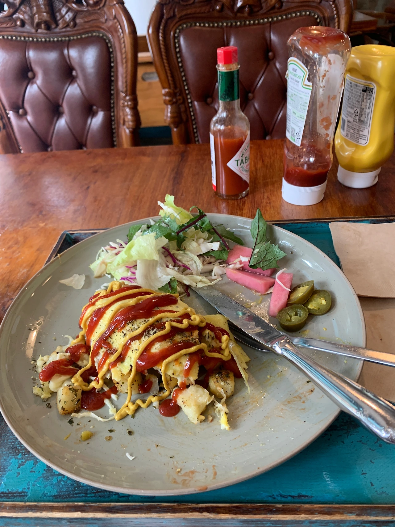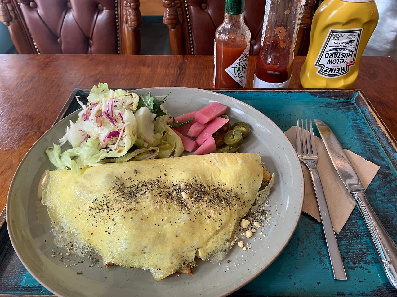 나는 이 집의 감자치즈오믈렛을 유난히 좋아한다. 접시 위에 올려진 오믈렛은 어디 하나 정교함을 뽐내지 않는다. 대신 다소 투박한 생김새 그대로, 속에 듬뿍 들어찬 감자와 치즈의 존재감을 숨기지 않는다. 포크를 살짝 넣으면 뜨끈한 김과 함께 버터향을 품은 부드러운 감자가 얼굴을 내민다.