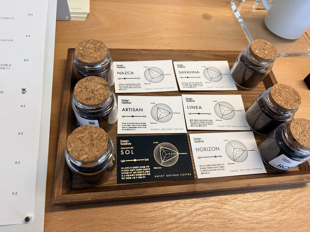 6가지 원두 중에서도 나는 이곳의 시그니처 블렌딩 원두 ‘쏠’을 특히 좋아한다. 처음 듣자마자 신한은행 어플 'SOL'을 떠올린 나는 역시나 속세로부터 한 치도 벗어날 수 없는 인간인가. 하하, 넝담. 하지만 맛은 농담이 아니었다. 라떼 한 모금이 지나가는 시간의 결이 달라지는 느낌. 블렌딩 원두 ‘쏠’을 선택하면 고소함과 함께 과하지 않은 은은한 풍미가 오래 머무른다. 한참 동안 향을 음미하다 보면, 커피를 마시는 것이 단순한 소비가 아니라 하루를 채우는 의식처럼 느껴진다.