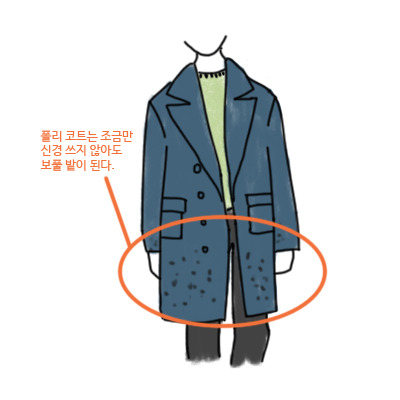 유행에 맞춰서 짧은 기간 입을 코트| 당연히 폴리나 아크릴로 만든 코트를 사도 괜찮다. 폴리와 아크릴로 만든 코트를 추천하지 않는 이유는 바로 오래 입으면 너덜너덜해지고, 보풀 밭이 되기 때문이다. 보풀을 자주 제거를 해줘도 그 과정에서 천이 손상된다. 결국 옷이 더 해지게 된다. 하지만 1-2년 입는 용도의 코트라면 비싼 돈 주고 모직 코트를 살 필요는 없다고 본다. 폴리와 아크릴도 처음 구매하고 입은 지 얼마 되지 않았을 때는 멋있어 보인다.