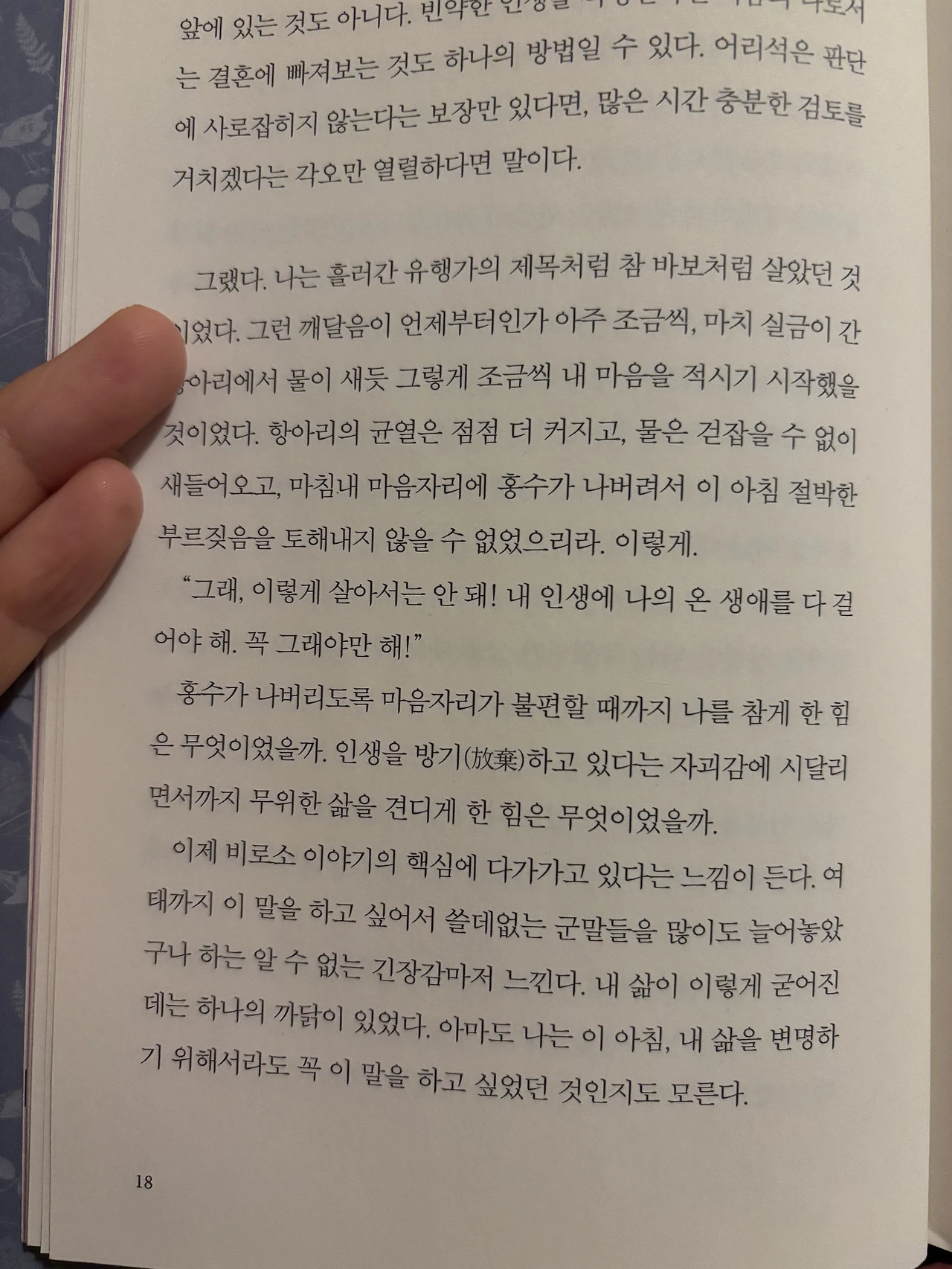 한국 책을 읽으면서 마음에 다가오는 구절을 발견했다.