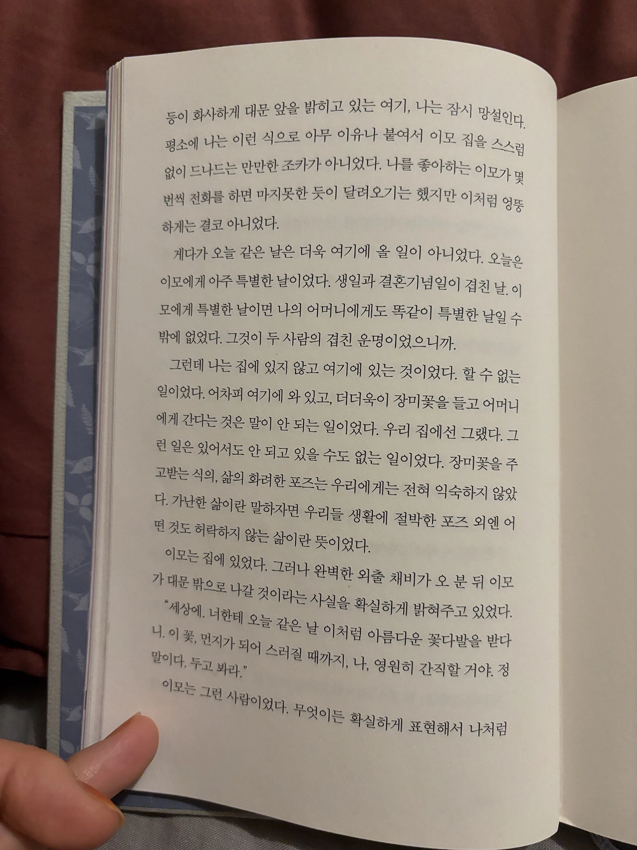 책에서 본 '이모'같은 사람을 현실에서도 본 것 같다. 선하고 착하고 더러움은 없는 것 같은 사람을 본 적이 있는 것 같았다.