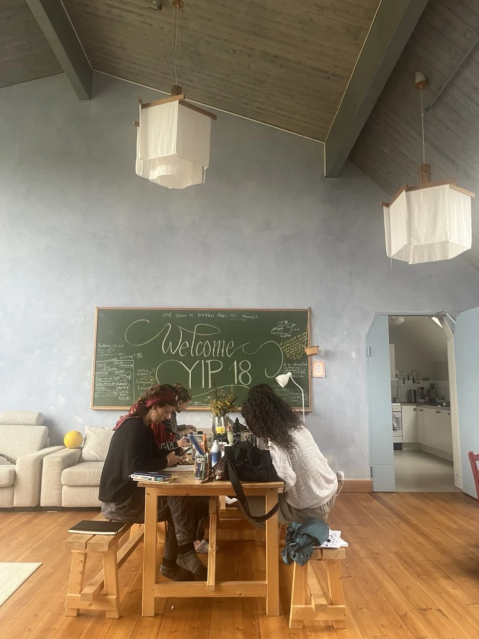 한 건물에는 여러 모빌들이 있었는데, 나중에 친구들이랑 만들어 보고 싶어서 열심히 사진을 찍었다. 나의 룸메이트 rowen은 모빌을 만들 수 있다고 했다. 그녀는 크로셰와 니팅도 할 수 있는 친구이다.
