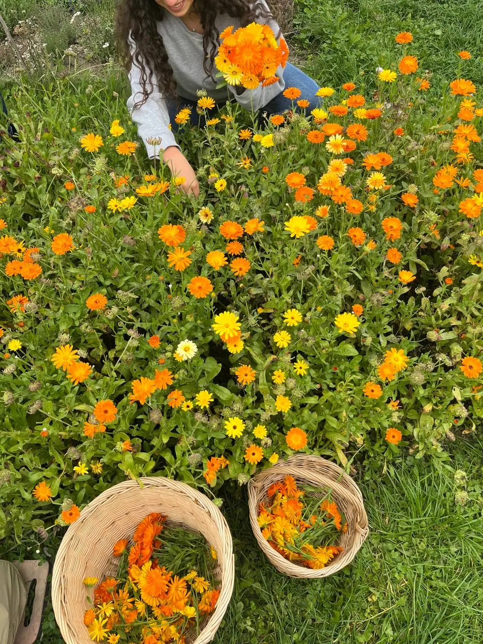 정원의 가운데 부분에는 캐모마일 꽃이 있는데 우리는 이 꽃이 활짝 핀 것을 꺾어서 모은다. 그리고, 씨를 받아서 말린 후에 나중의 씨앗으로 저장한다.