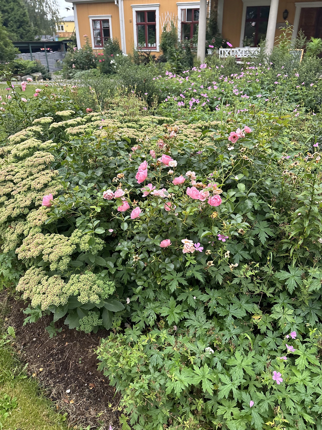 장미가 정원에 아름답게 피어 있다.