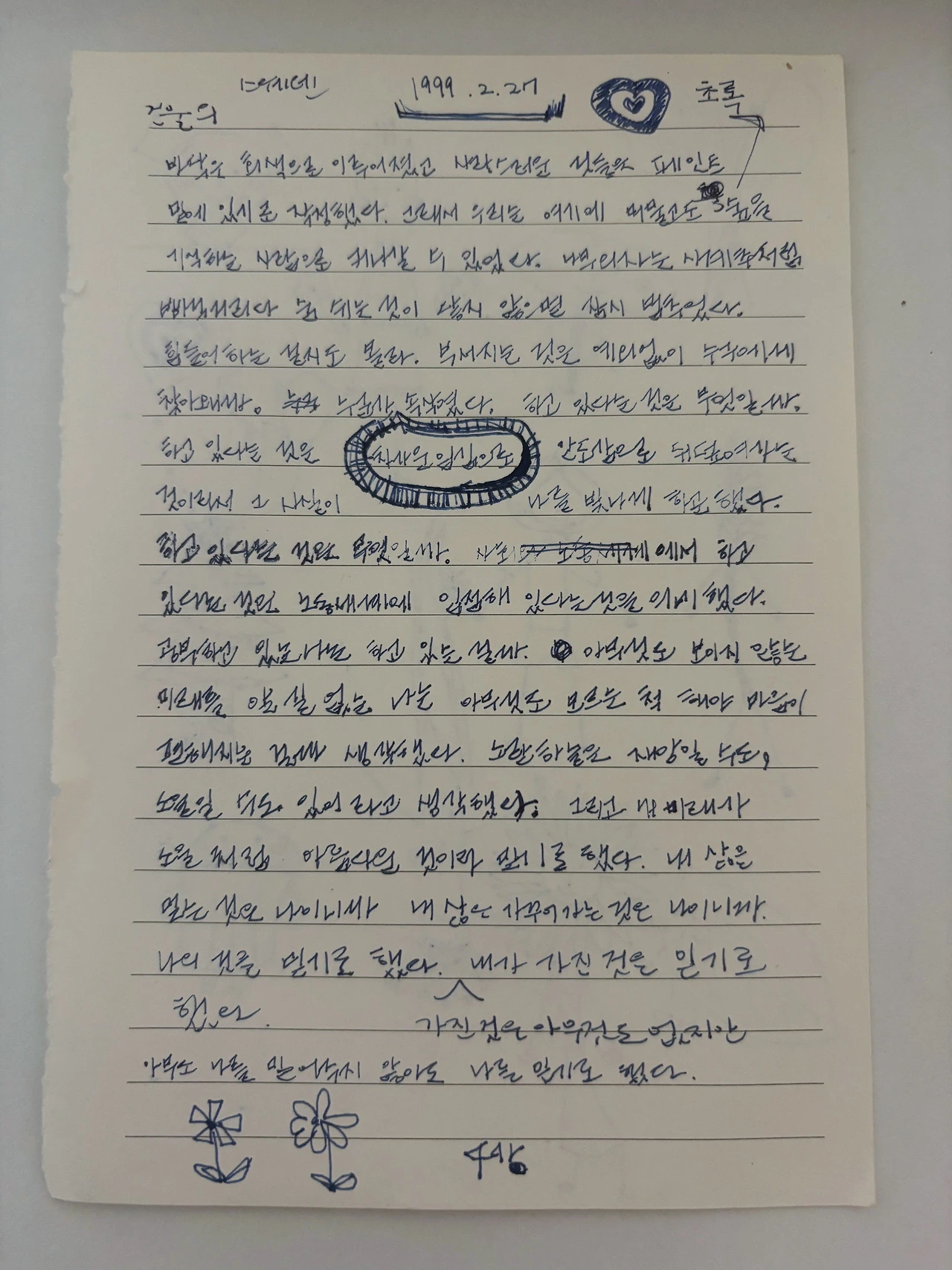 나는 친구들과 비자 신청을 지속하다 너무 지루해지고, 남루한 느낌이 들어서 일기장에 나의 글과 귀여운 그림을 그렸다.