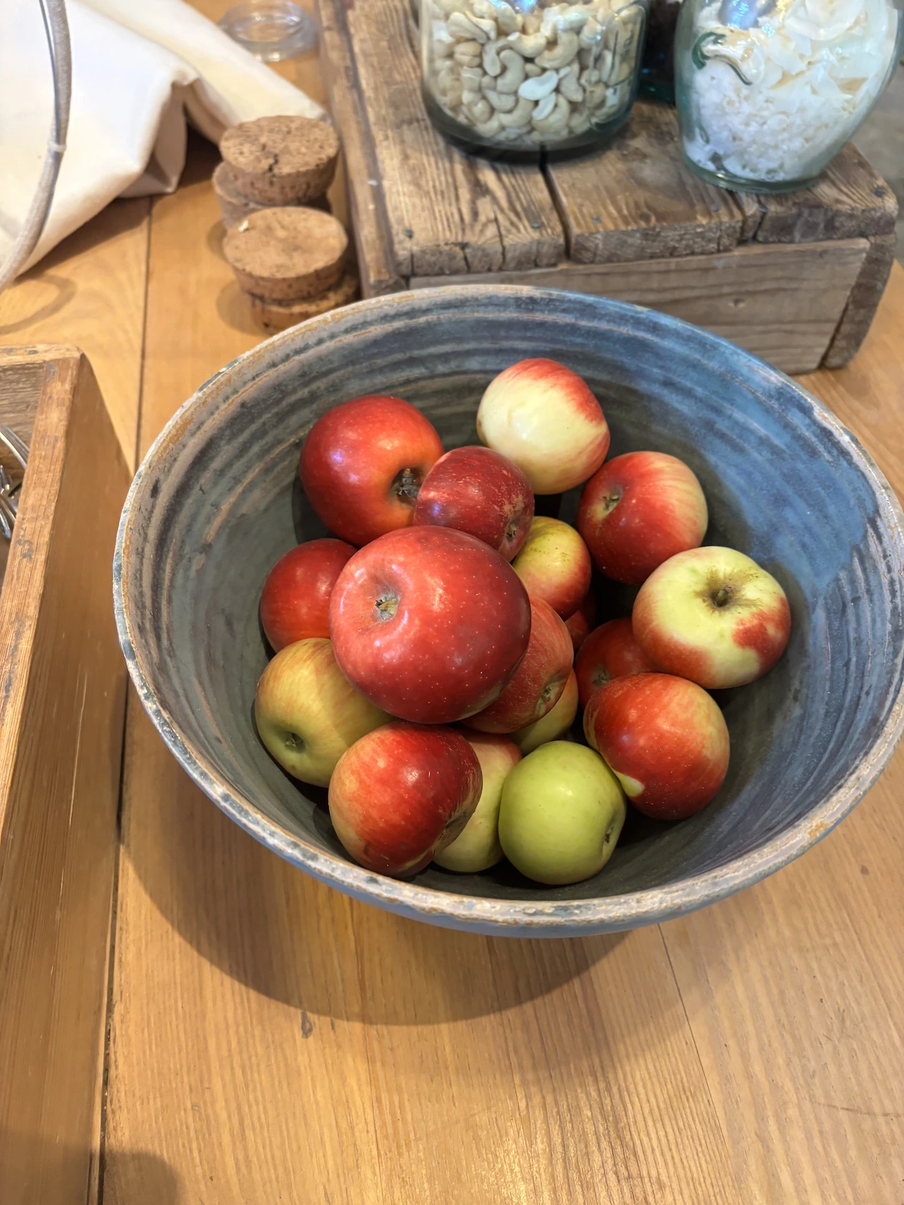 이곳의 사과는 밖의 사과 나무에서 따왔고, 모든 음식은 지역의 유기농 농장에서 가져온다. 나중에 나만의 집을 가지게 된다면 복숭아 나무와 사과 나무를 기르고 싶다고 생각했다. 꿈이 늘어나는 나날이다.