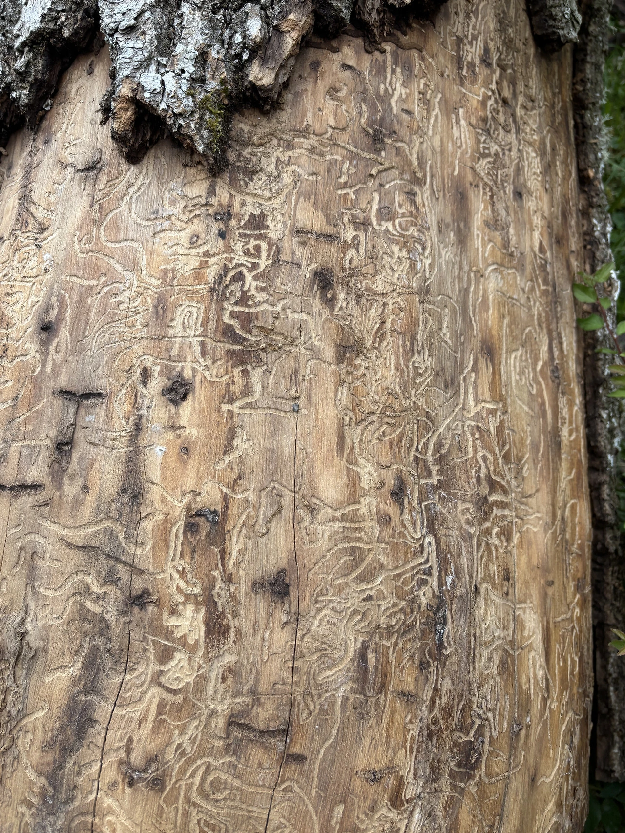 물가에 가까워지자, 한 나무가 껍질이 없어진 채 서 있었다.