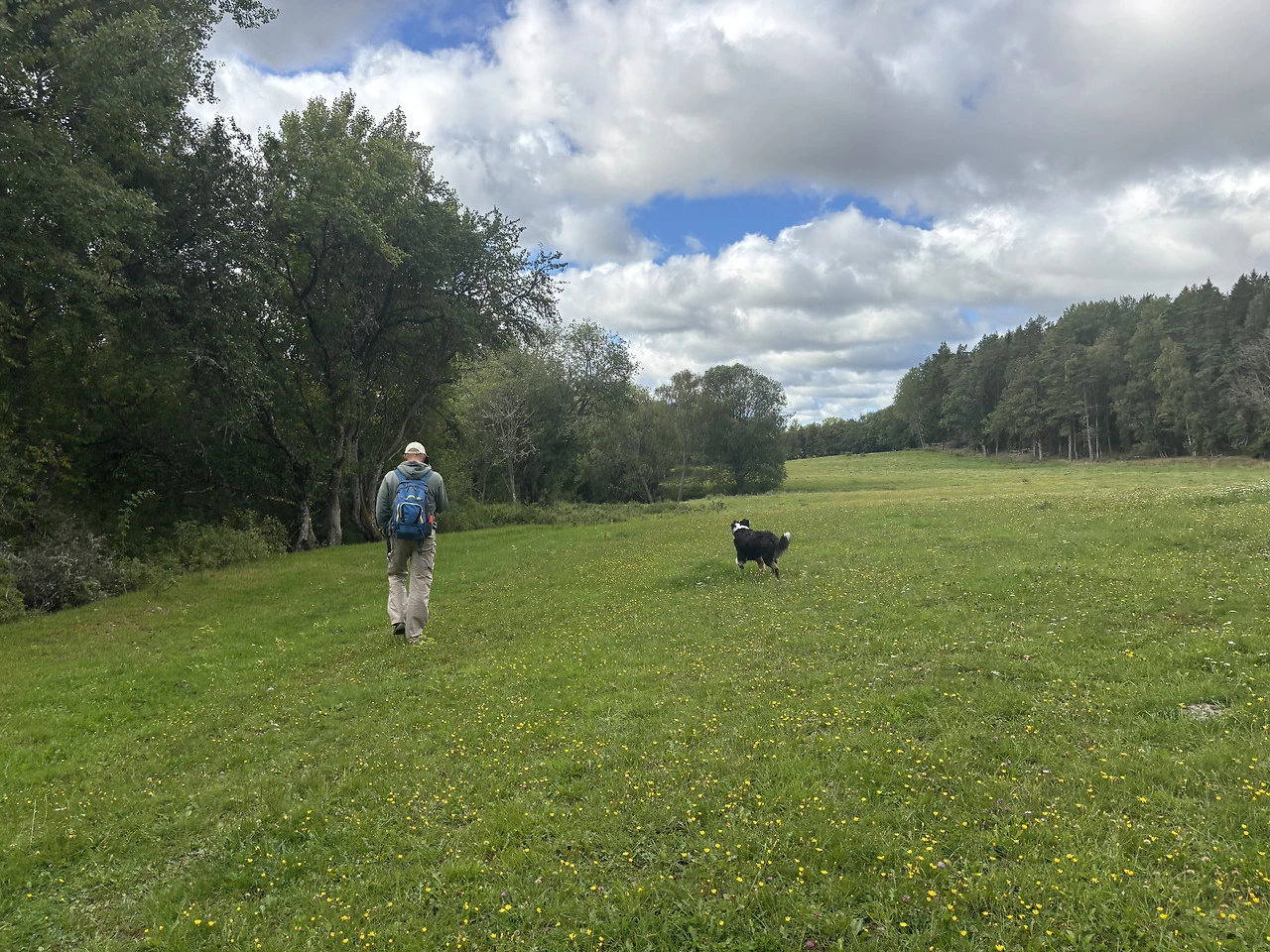 들판이 보이자 선생님의 개가 너무나 기뻐했다.