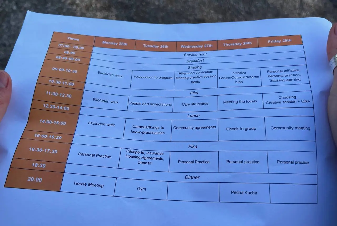 스웨덴의 날씨는 매우 춥고, 한기가 서렸다. 추운 날씨는 서로를 더욱 붙어 있게 하고 의지하게 한다. 우리는 부엌에 모여서 점심에 먹을 샌드위치를 만들었다. YIP에는 신선한 치즈를 중점으로 둔 음식이 많다. 모든 음식은 비건 또는 베지터리언을 중심으로 만들고, 신선한 우유는 모두 이곳의 양과 소들에게서 나온다.