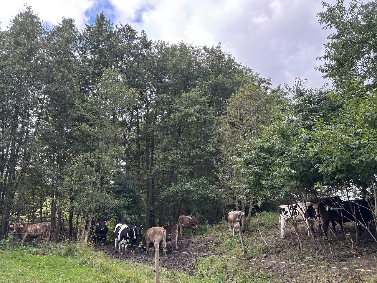 잠시 사과를 먹으며 쉼을 가지다가 들판에서 방목하는 소를 보았다.