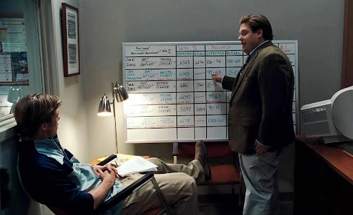 그는 가난한 구단의 단장이다. 선수들을 스카웃하고 교체해 팀을 꾸리는 일을 한다. 별볼일없는 구단을 일으키고자 했지만 스타구단에 맞서 유명하고 능력있는 선수들을 데려오기에는 벅찼다. 그러다 그는 우연히 피터라는 인물을 만난다. 예일대 경제학과를 졸업한 그는 꽤나 통찰력있는 선수분석가였다. 곧 팀이 된 둘은 사상최초 ‘숫자로 야구하기’에 도전한다. 유명한 선수부터 유명하지 않은 선수까지, 그간 세간의 주목을 받은 선수부터 저평가되어왔던 선수까지. 각 선수마다 수치화한 출루율을 가지고 팀의 목표 숫자에 맞도록 선수단을 꾸리는 것이었다. 어떤 사생활이 있는지, 다친 적이 있었는지조차 상관없었다. 그들에게 중요한건 출루율이라는 숫자였다.