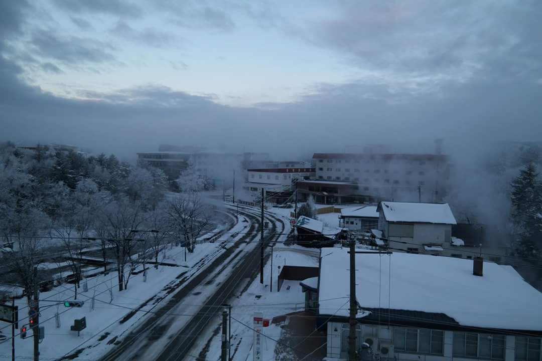마을에 도착하니 매캐한 유황냄새가 코를 자극하고 온천에서 뿜어져 나오는 수증기가 차가운 대기와 만나 안개처럼 마을에 자욱한게 환상적인 풍경이었다. 거리에 설치된 온도계는 영하 20도를 가리키고 셀카 찍는 손조차 순식간에 얼어붙으니 진짜 겨울 왕국에 온 것이 분명했다.