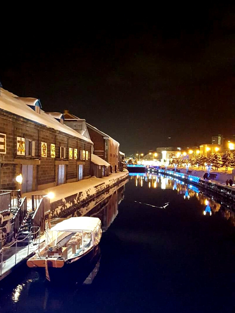 이곳의 명물 운하를 거닐고 있을때 마침 눈발까지 흩날리니 영화의 주인공이 되어 거리를 활보하는 느낌이 들었다. 폐점시간을 앞둔 전통시장에서 디즈니 에니메이션 겨울왕국 엘사의 렛잇고 노래까지 흘러나오니 오타루의 겨울밤 분위기가 더욱 달구어졌다. 아마도 그날 밤 오타루를 가지 않았다면 많이 아쉬웠을 것이다.
