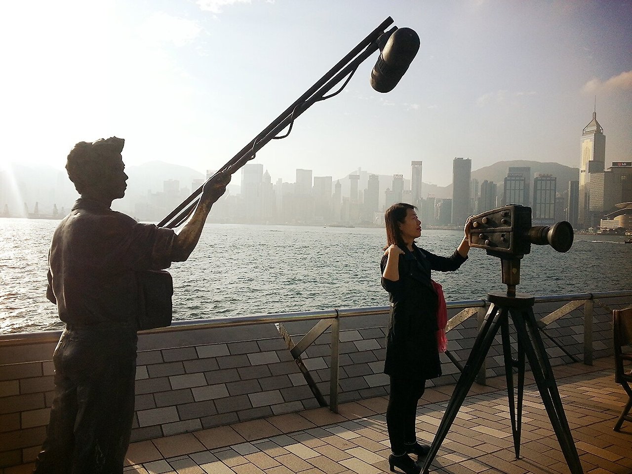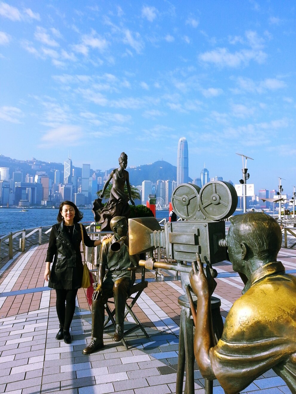길가에는 영화 촬영 장면을 형상화한 동상들이 멋진 모습으로 포즈를 취하고 바닥에는 우리도 너무 잘아는 홍콩 배우들 성룡, 장만옥, 이연걸, 장쯔이등의 핸드 프린트가 곳곳에 널려 있다.