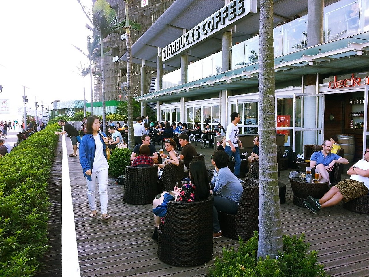 바다가 산책로를 따라 걷다보니 너무도 익숙한 스타벅스가 전망 좋은 위치에 모습을 드러낸다. 테라스가 커피 한잔 유혹의 손짓을 보낸다.