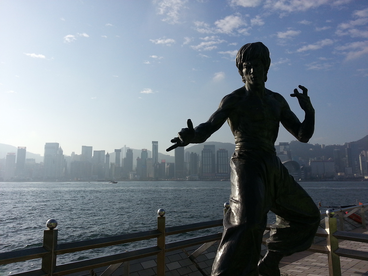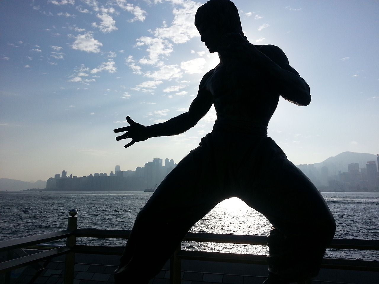 이소룡의 카리스마 넘치는 동상을 보니 영화의 마법처럼 괴성을 지르며 포효하며 살아 나올 듯 하다.