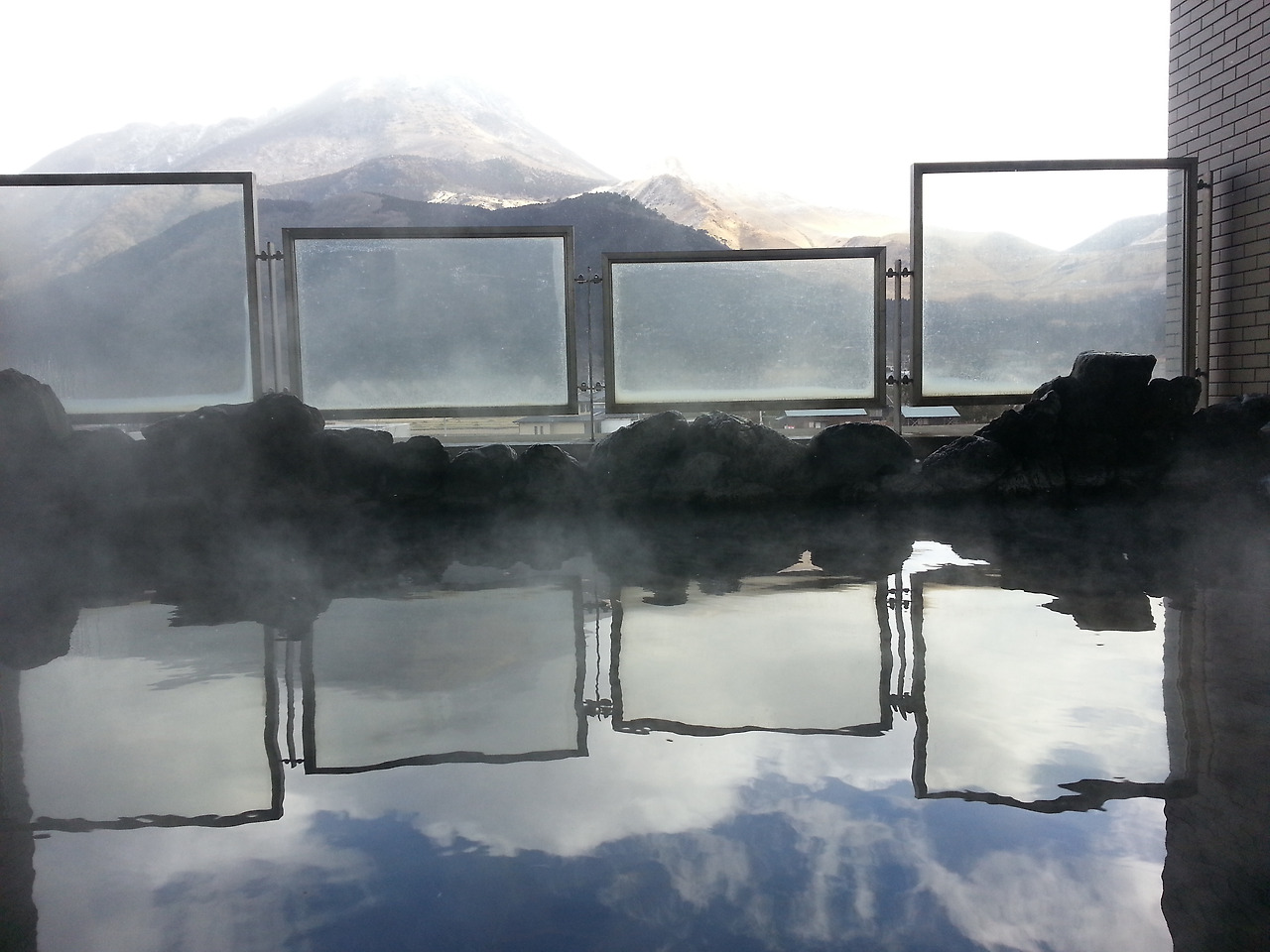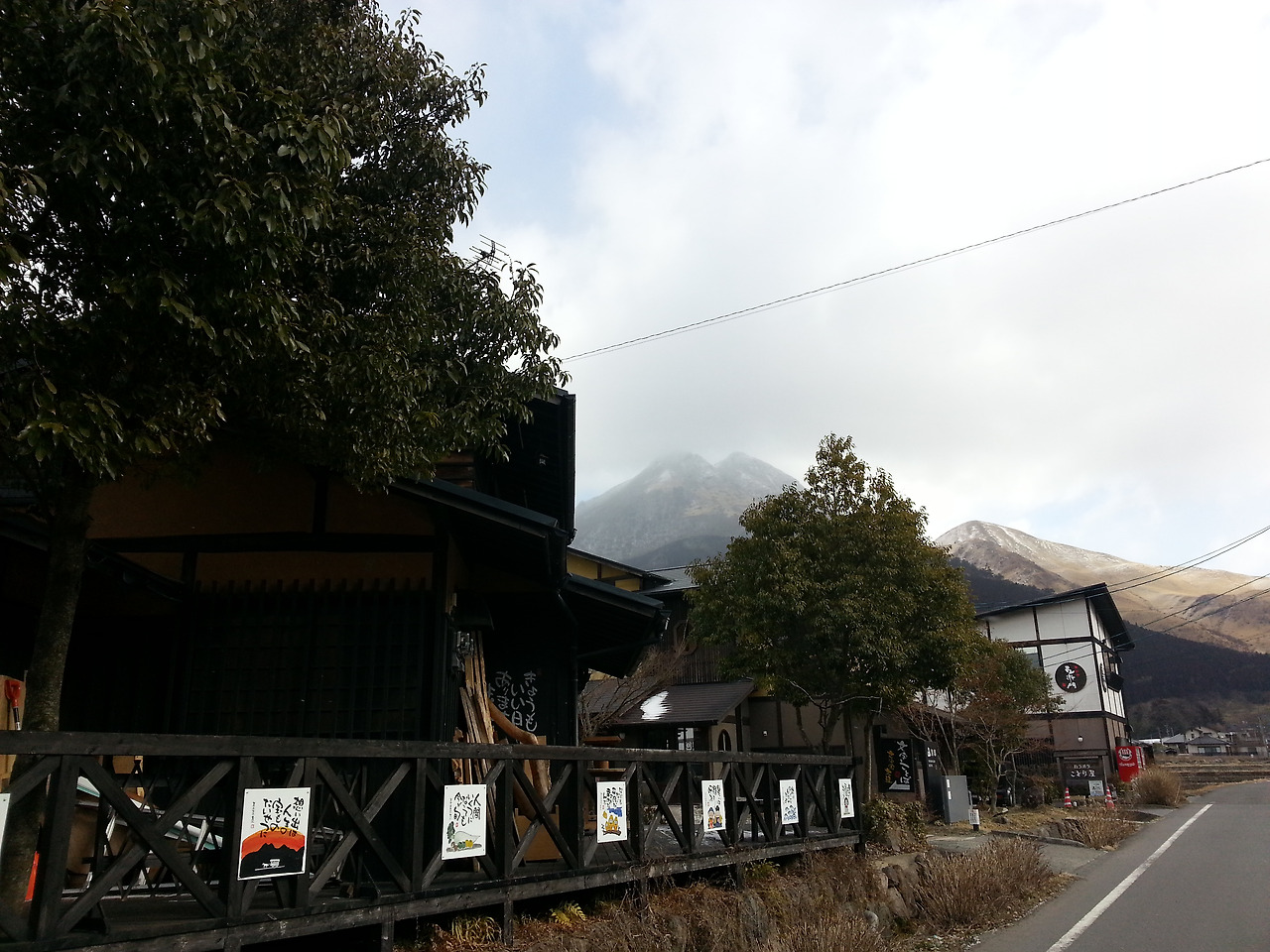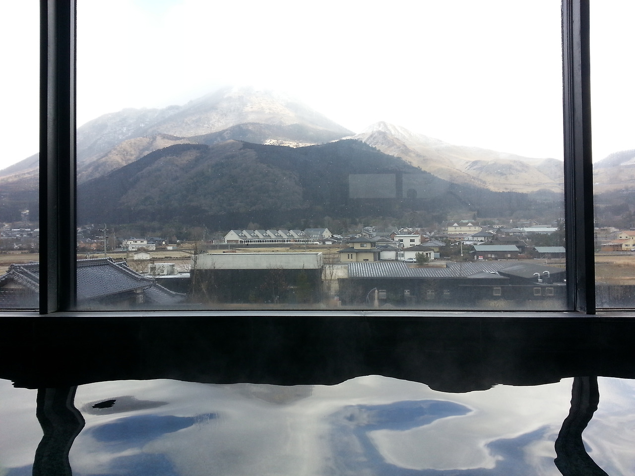 창밖 으로는 유후인의 신령한 유후인 산이 눈을 머금은 채 위엄을 갖추고 마주하고 정상에는 구름을 휘감는다. 넓다란 평야에는 먼발치 다른 온천에서 수증기들이 몽실 몽실 하늘을 향하였다.