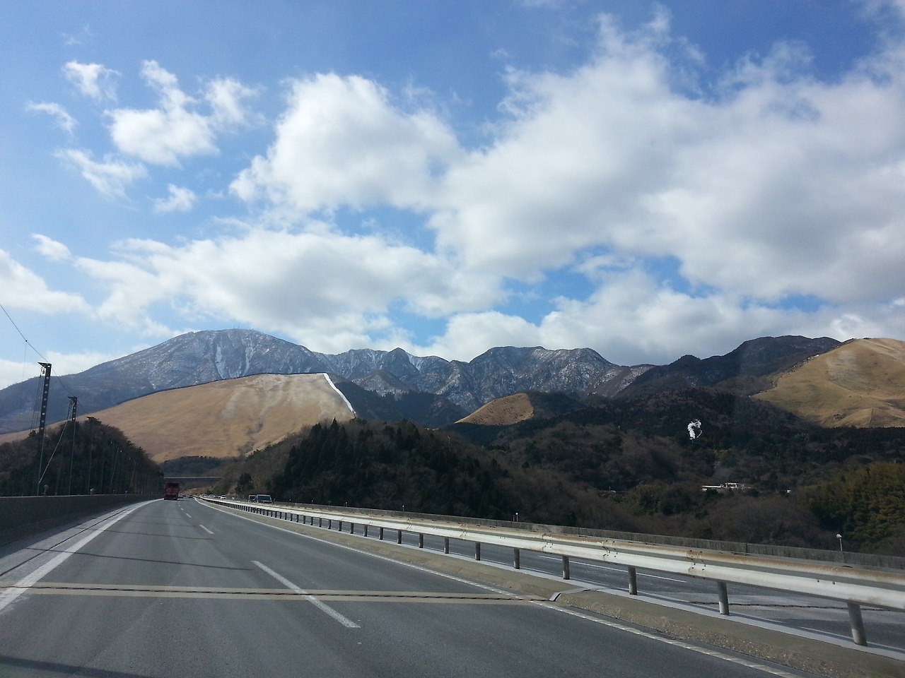 2시간여를 달리니 이곳이 어제 만났던 남국 큐슈가 맞는 것인지 하는 의아심이 생겼다. 고속도로 주변 산에는 잔설이 보이고 저멀리 스위스 만년설을 품은듯 우뚝 솟은 장대한 봉우리가 태양에 반사되어 위용을 자랑하고 있었다.