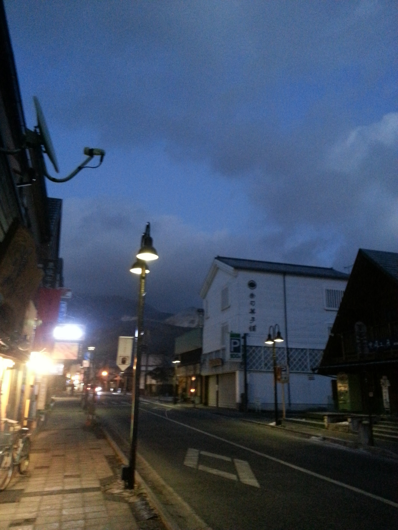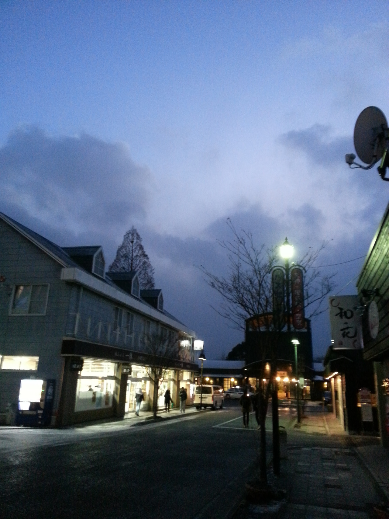 밖으론 푸른빛의 어둠이 내리는 초저녁의 하늘이 금방이라도 눈이 내릴듯 유후인 역사를 배경으로 안개구름이 자욱한게 인상적이었다.