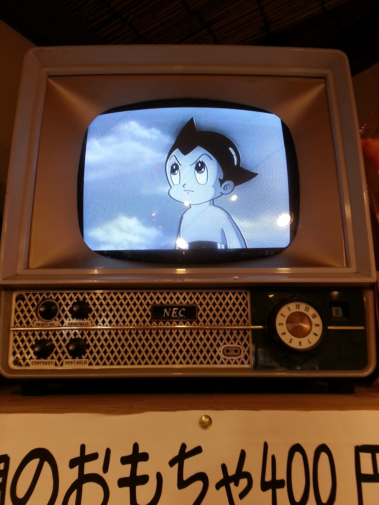 어린 시절 저녁 시간이면 우주소년 아톰을 흥얼거리며 흑백 TV 앞으로 달려가곤 하였는데 일본에서 골동품 TV에서 우주 소년 아톰을 만나니 어린 시절의 동심으로 돌아온 듯 하였다.