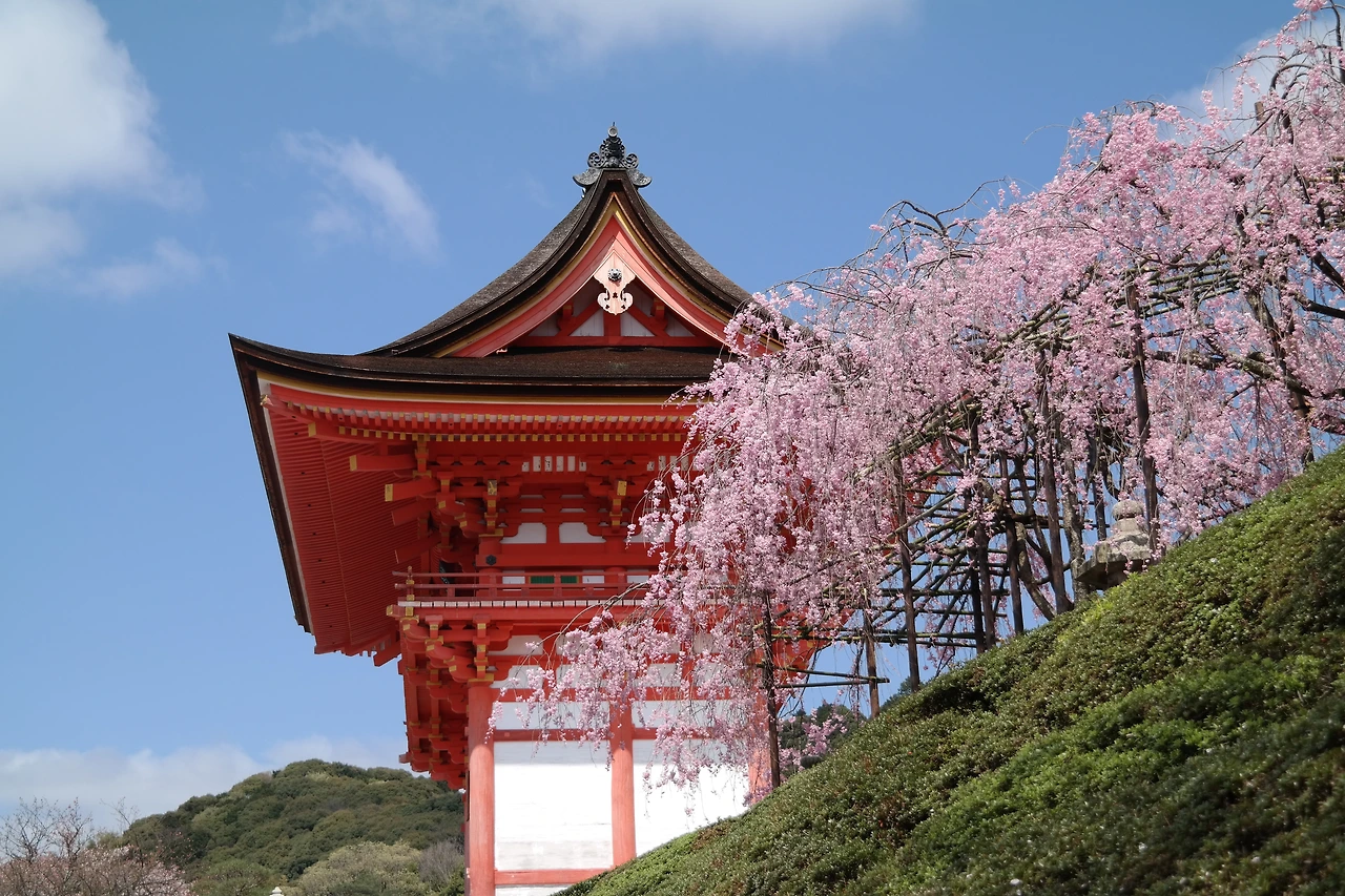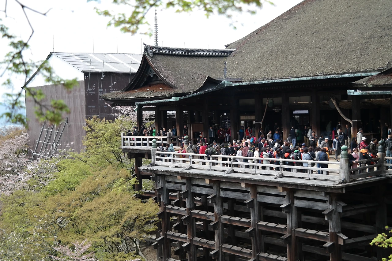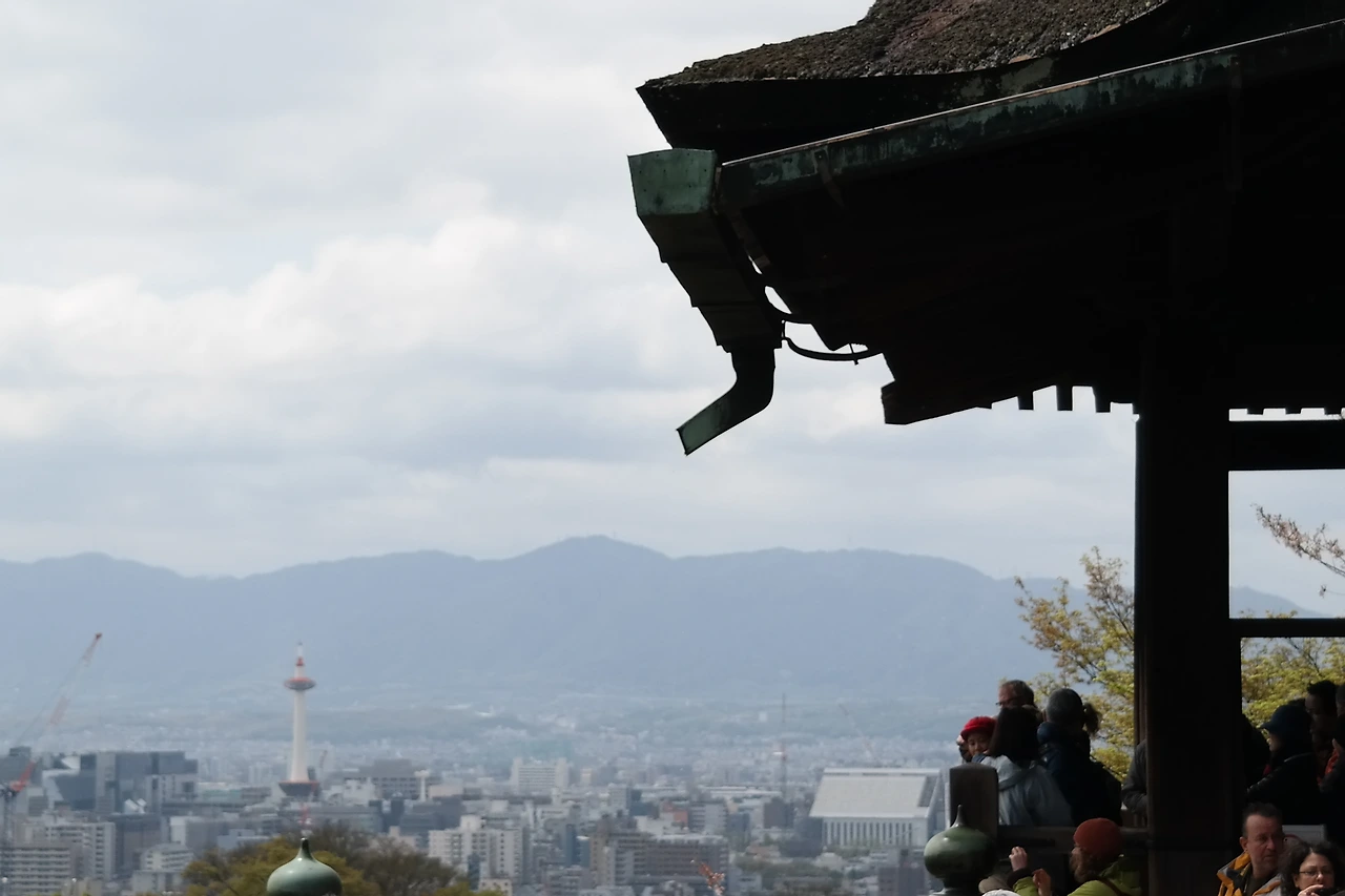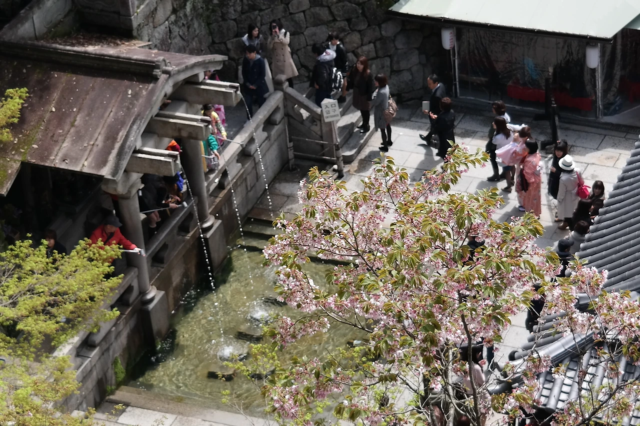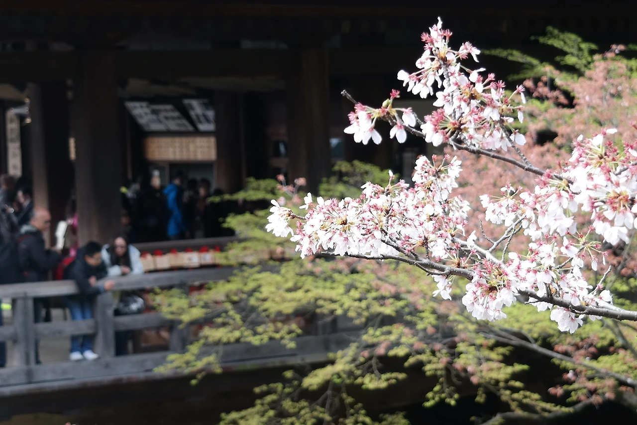 그리도 유명하다던 청수사의 만개한 벚꽃은 만나지 못했지만 예상치 못한 화창한 날씨에 충분한 보상을 받은 듯 하였다. 비가 개인 뒤의 상쾌한 공기 내음은 어제 온종일 앓았던 두통을 사라지게 만들고 푸르름과 분홍색 벚꽃을 배경으로 붉은 빛깔의 사찰이 봄의 정취를 북 돋운다.
