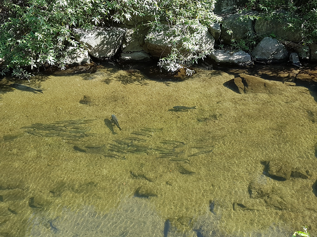 팔뚝 만한 잉어들이 느긋하게 유영을 즐기고 물위로 뛰어오르는 피라미떼들이 햇빛에 반사되어 반짝이는 모습은 정말 감동스런 장면이다.