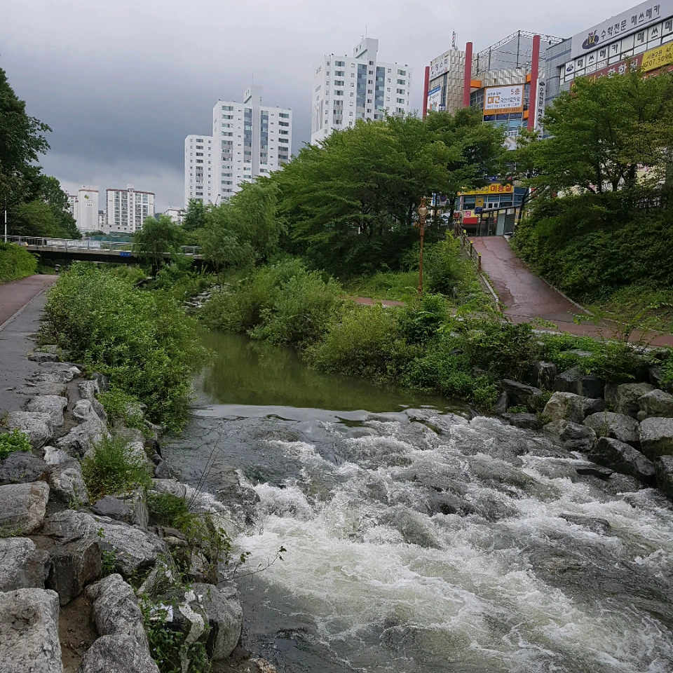 잦은비로 아파트 숲을 가로 지르는 개천은 오늘 만큼은 설악산의 계곡이 부럽지 않다.