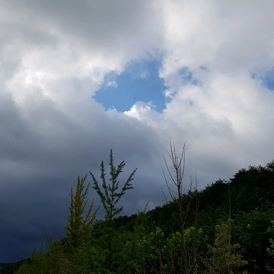 창밖으로 스며든 아침 햇살에 잠이 깨어 산책을 위해 집밖으로 나섰다가 혹시나 싶어 우산을 챙겼다. 걷기 시작한지 십여분도 지나지 않아 태양까지 보였던 맑은 하늘에 검푸른 구름이 드리우더니 거칠게 바람이 불어대며 비를 쏟기 시작했다. 그러다 십여분도 안되어 비가 그치더니 구름 사이로 다시 해가 나오고 그러다 비가 오기를 반복 하였다.