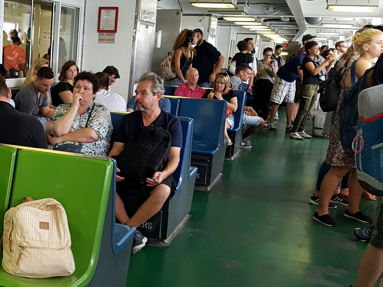 스텐튼 아일랜드가 뉴욕시의 일부라 24시간 동안 30분 간격으로 주민들의 편의를 위해 시에서 무료 셔틀로 운행을 하는것 같았다. 자유의 여신상이 보이기 시작하자 많은 사람들이 사진 찍기에 몰두하는것으로 보아 탑승한 대부분이 관광객들로 생각 되었다.