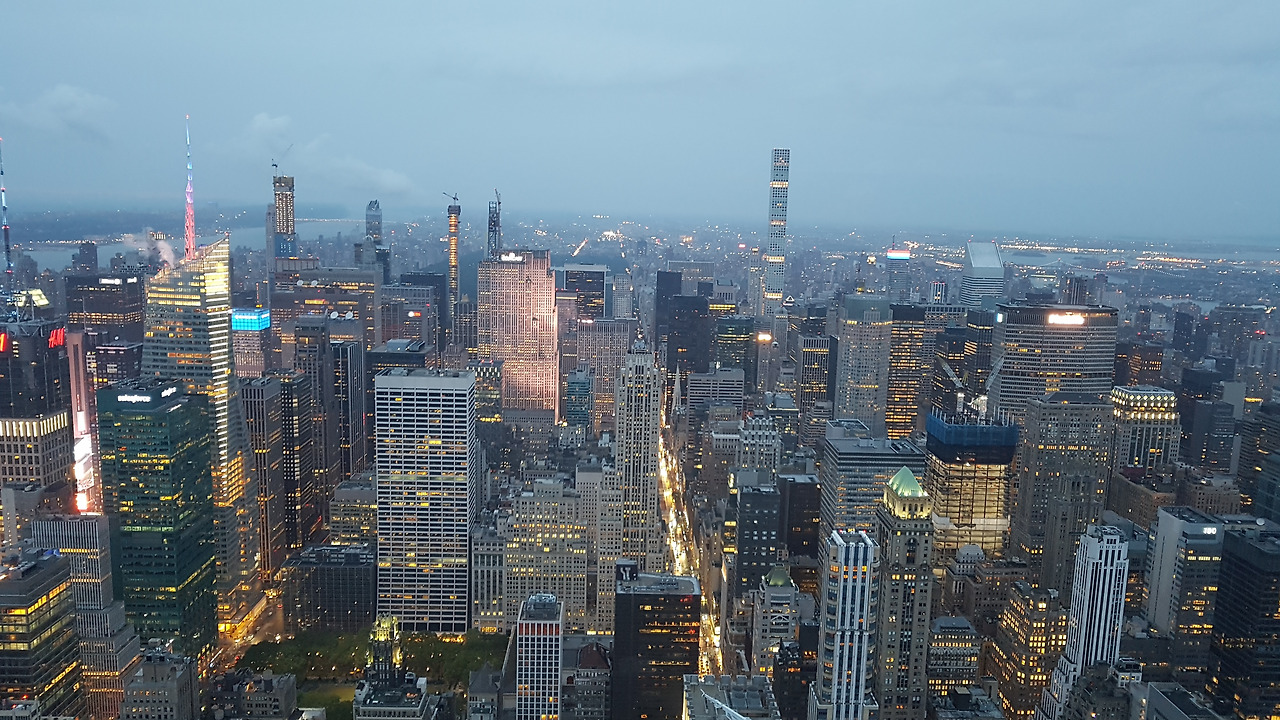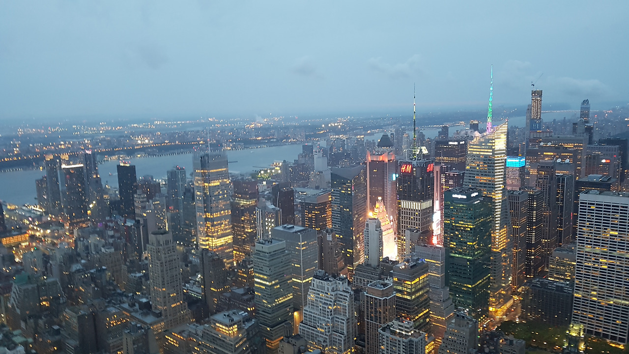 어둠이 드리워지고 맨하탄 마천루에 불빛들이 하나둘씩 켜져나가다가 마침내 불야성의 바다를 이루는 광경은 장엄하다 못해 경외심 마저 느껴졌다.
