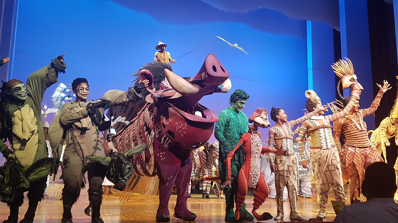 공연 시작과 함께 아프리카의 광활한 대지에서의 일출과 함께 'Circle of the life' 라이온킹 주제곡을 합창하며 문밖에서 쏟아져 들어오는 기린 사자 코끼리등 동물 분장한 배우들이 무대에 오를때 몸에 전율이 느껴지고 사람들이 동물 가면을 쓰고 연기 하는것이 너무도 자연스러운 실사판 라이온 킹 이었다.