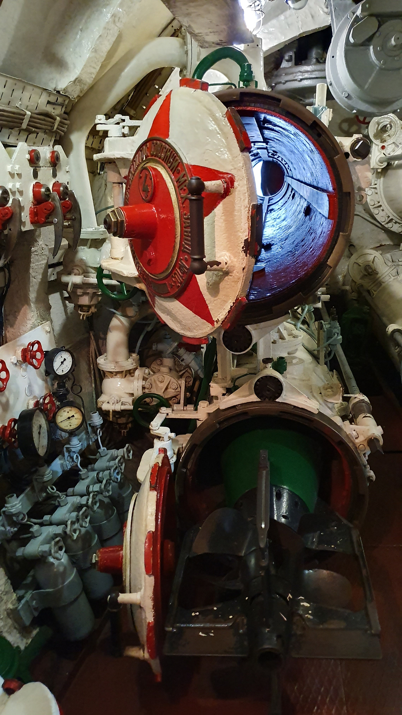 세계2차 대전때 사용되었다는 잠수함 안으로 들어가보니 일부구간은 기록 전시실로 나머지는 그당시 그대로의 모습으로 전시되어 있었는데 계기판과 원색의 어뢰 발사장치가 참으로 이색적인 볼거리 이었다.