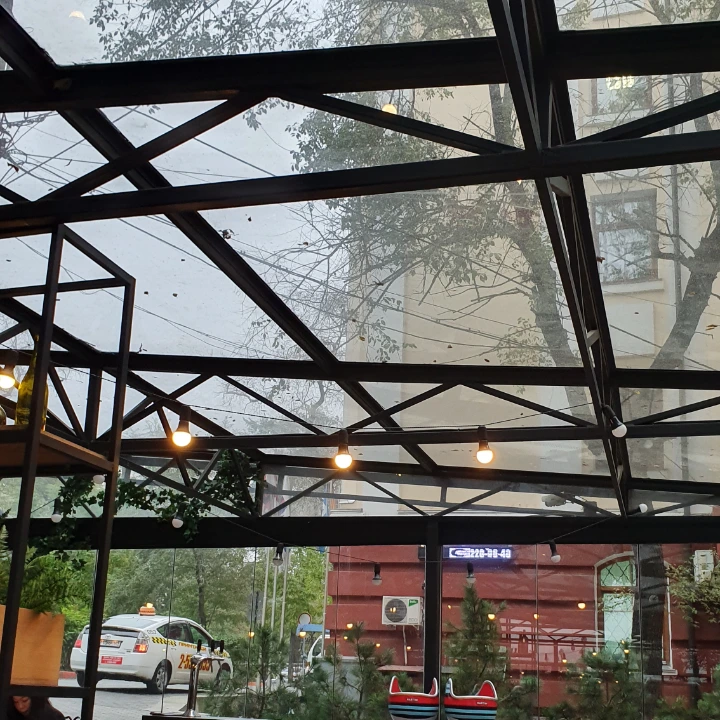 기차 탑승 시간인 자정 까지 아직도 6시간을 기다려야 했기에 시간을 보낼곳을 찾다가 숙소 근처의 사방이 보이는 유리 온실처럼 생긴 세련되고 이색적인 분위기의 카페를 만났다. 커피2잔으로 2시간여를 소요하다 어둠이 내리자 저녁식사를 주문했다. 그래도 기차 출발 시간까지 3~4시간이 남았다.