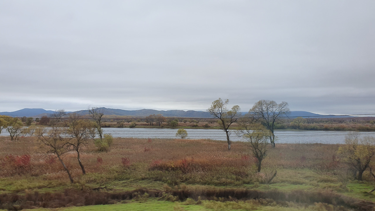 이른 새벽에 일어났는데도 시베리아의 벌판과 숲을 즐기다 보니 시간이 쏜살같이 흘러가 12시를 가르키고 있었다. 목적지인 하바롭스크 까지 2시간이 채 남지 않아 곧 시베리아 횡단열차와 이별을 고해야 한다는 아쉬운 마음이 밀려오는 순간 차창밖으로 철길을 따라 흐르는 강줄기가 보이기 시작했다.