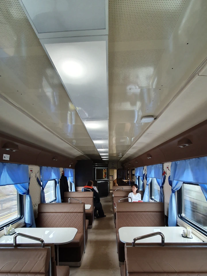 별것 아닌 풍경에 감탄사를 연발하느냐는 표정으로 나를 쳐다보는것 같은 객실 러시아 여행객에게 눈치가 느껴져 객실에서 빠져나와 식당칸으로 자리를 옮겼다. 식당칸은 전체를 전세를 낸것처럼 다른 손님은 보이지 않아 철커덕 거리는 효과음만 있을뿐 이었다.