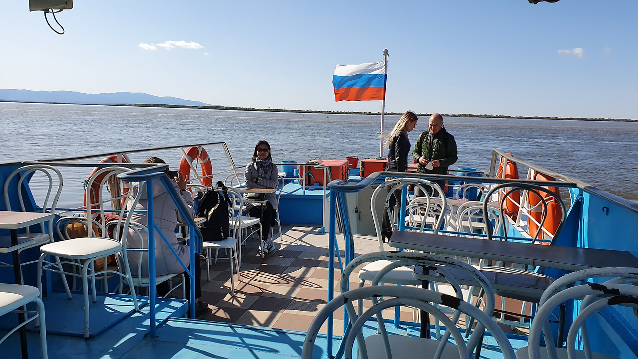 블라디보스토크로 돌아가는 시베리아 횡단열차에 탑승하기까지는 호텔에서 체크아웃 하고도 4시간여가 남아 있어 어떻게 남은시간을 시간을 잘 활용할 수 있을까 고민하다 아무르강 유람선 승선 여행기를 블로그에서 본 기억이 나서 강가로 향했다. 마침 선착장으로 들어오는 유람선이 있어 출발시간을 확인해보니 다행히도 우리가 체류할 시간대와 맞아서 배에 올랐다.