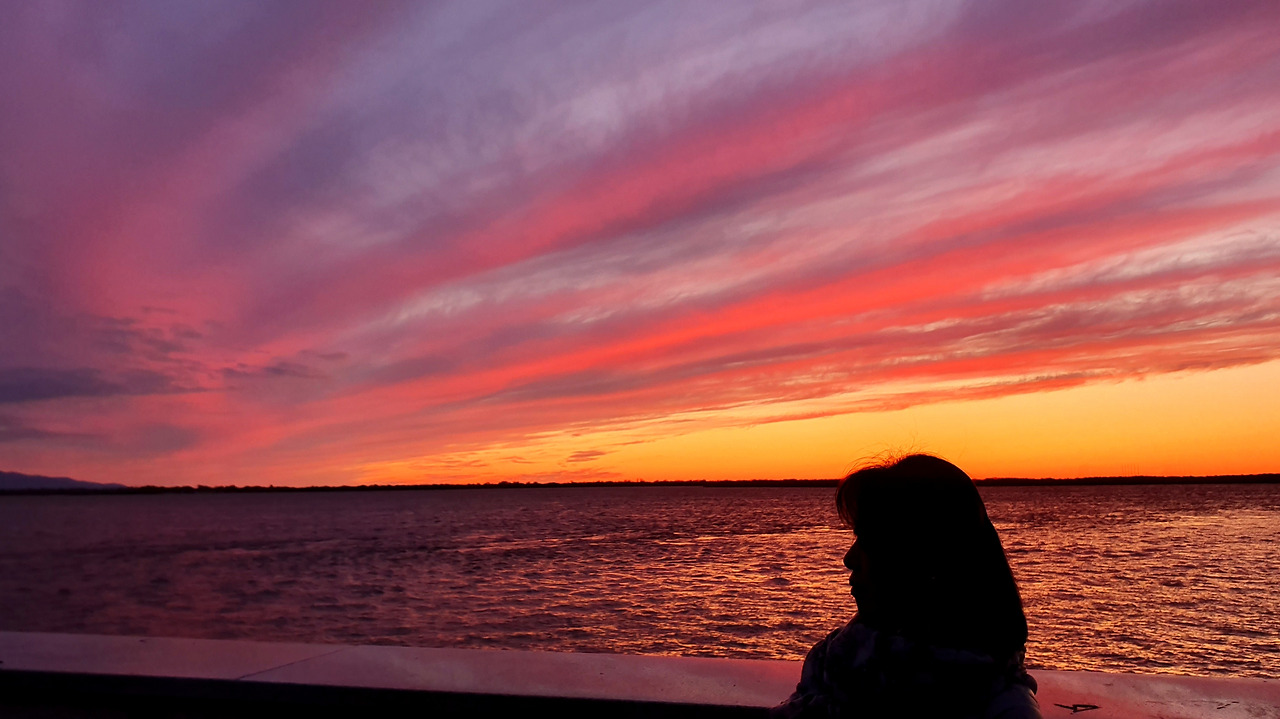 급히 카메라를 꺼내 태양의 마지막 모습을 담자마자 태양은 순식간에 눈앞에서 자취를 감추었다. 그러자 하늘은 붉은빛 핑크빛 푸른 빛깔을 피워내기 시작했고 레이저 빔을 쏘아내듯 황홀한 일몰을 연출하고 있었다.