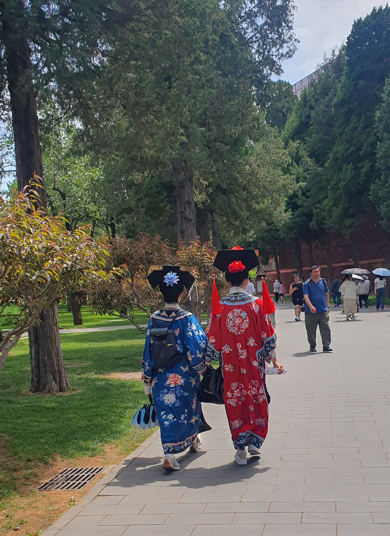 성 안으로 들어서자, 전통 의상을 곱게 차려입은 여인들이 눈에 띈다. 화려한 한푸(漢服)의 소매가 햇빛을 머금고 나부끼는 모습은 마치 시간을 되감아 궁중의 정원을 거니는 귀비처럼 보인다.