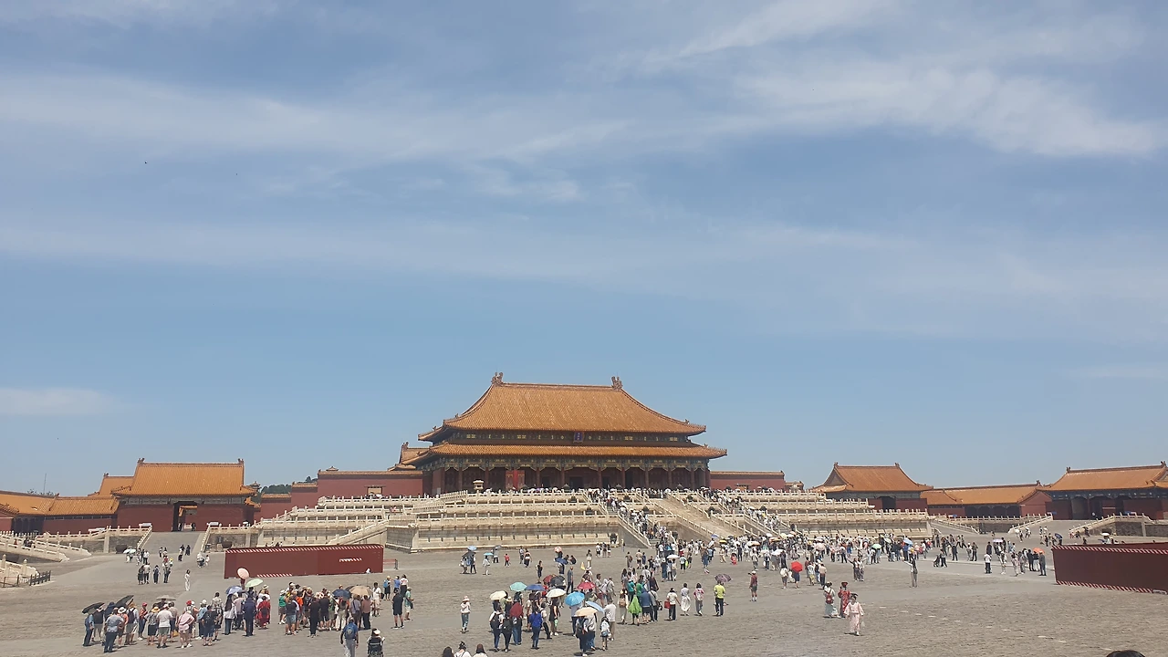 성곽 위에 오르니, 황금빛 지붕들이 파노라마처럼 눈앞에 펼쳐진다. 직선과 곡선, 단청과 기와, 인간의 손으로 빚어낸 구조물이 이렇게까지 장엄할 수 있다니. 이는 단지 건축이 아닌, 천자의 나라가 꿈꾸었던 우주의 모형이었다. 명나라 100만 인구 중 10만 명이 자금성 건설에 동원되었다는 기록은 이곳의 스케일을 가늠하게 한다.