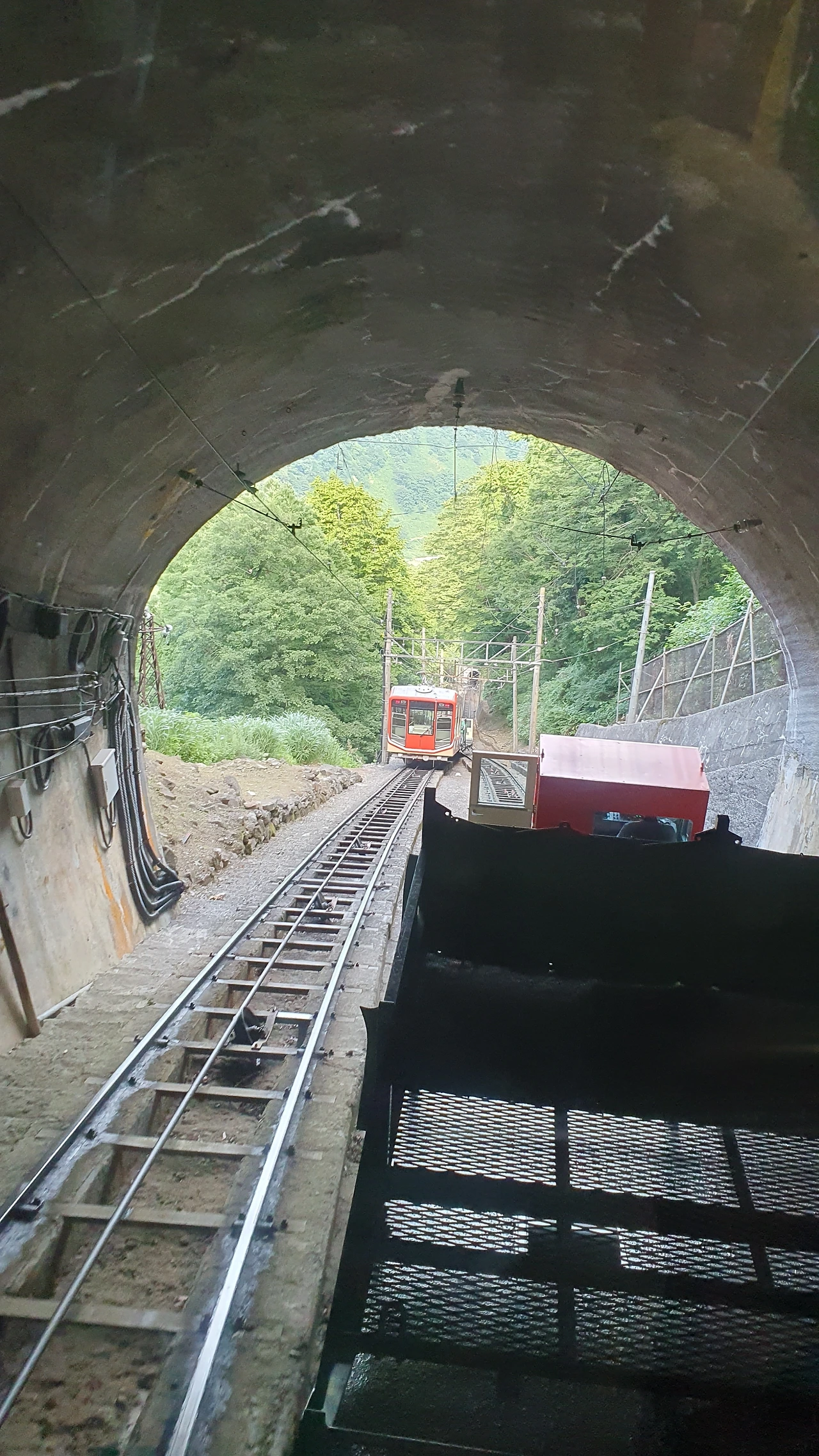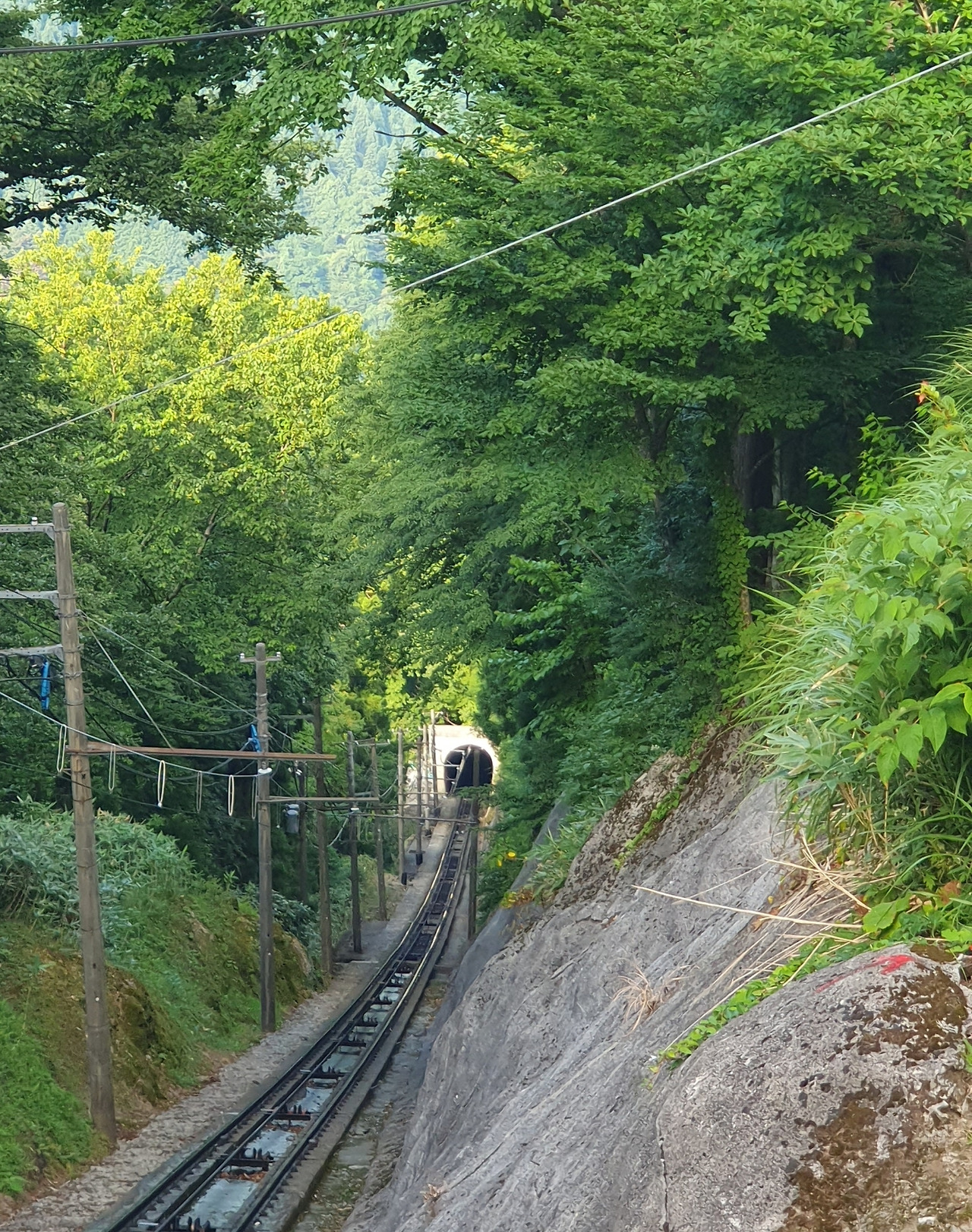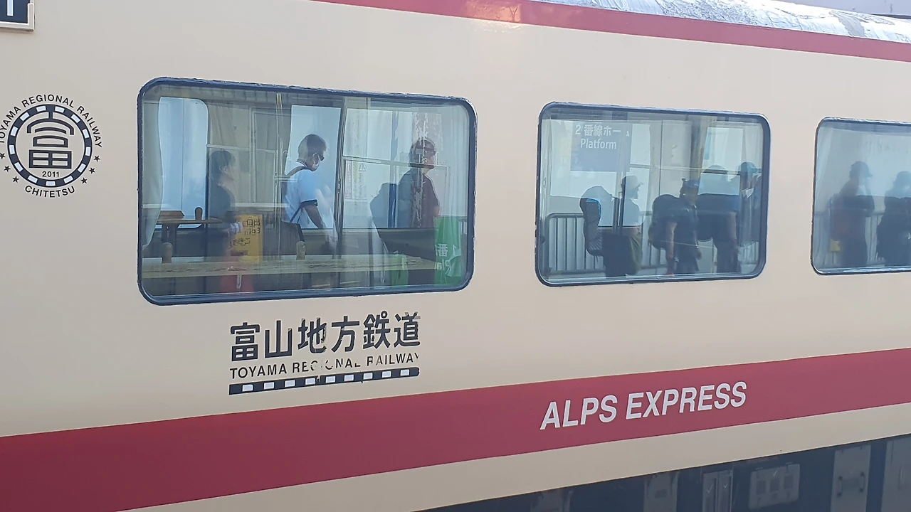 ‘알프스 익스프레스’라 적힌 빨간 열차를 보고, 잠시 스위스의 빙하특급이 떠올랐지만… 현실은 동네마다 멈추는 완행 열차였다.