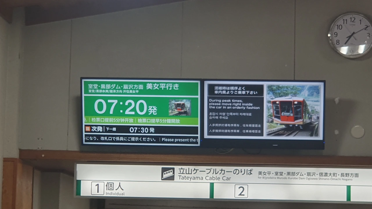 도야마역에서 약 1시간 반, 드디어 알펜루트의 입구인 다테야마 역에 도착했다.