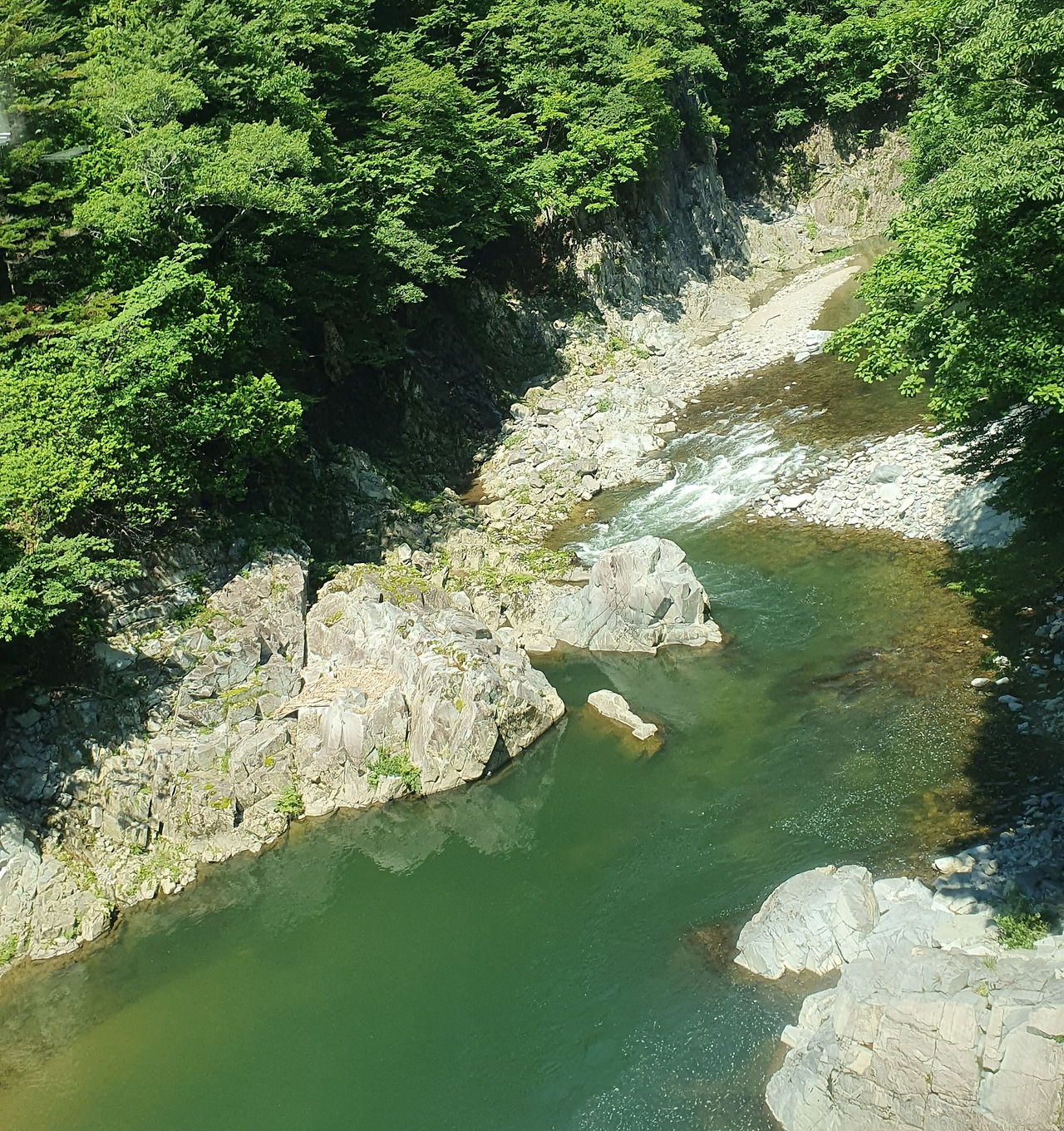 차창밖으로 평화로운 들판과 산, 거칠은 물결을 품은 계곡들이 펼쳐져서 게로에서 기차로 1시간 반의 시간이 순식간에 지나갔다.