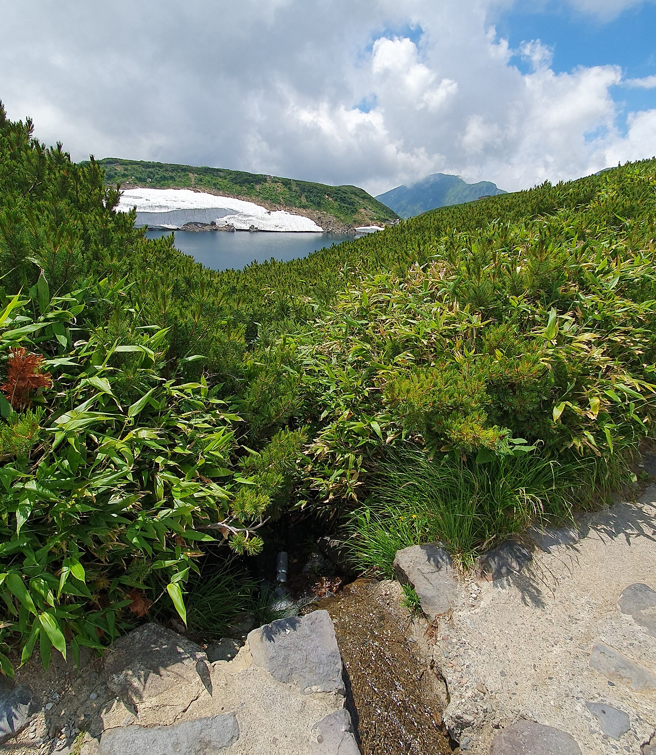 전날엔 보지 못했던 작은 호수가 언덕 너머에서 모습을 드러냈다. 졸졸 흐르는 물소리를 따라 눈을 돌리니, 전날 만났던 여름날에도 설벽을 간직한 호수로 물줄기가 이어지고 있었다. 순간, 자연은 따로 떨어진 개체들이 아니라 거대한 하나의 유기체처럼 느껴졌다.